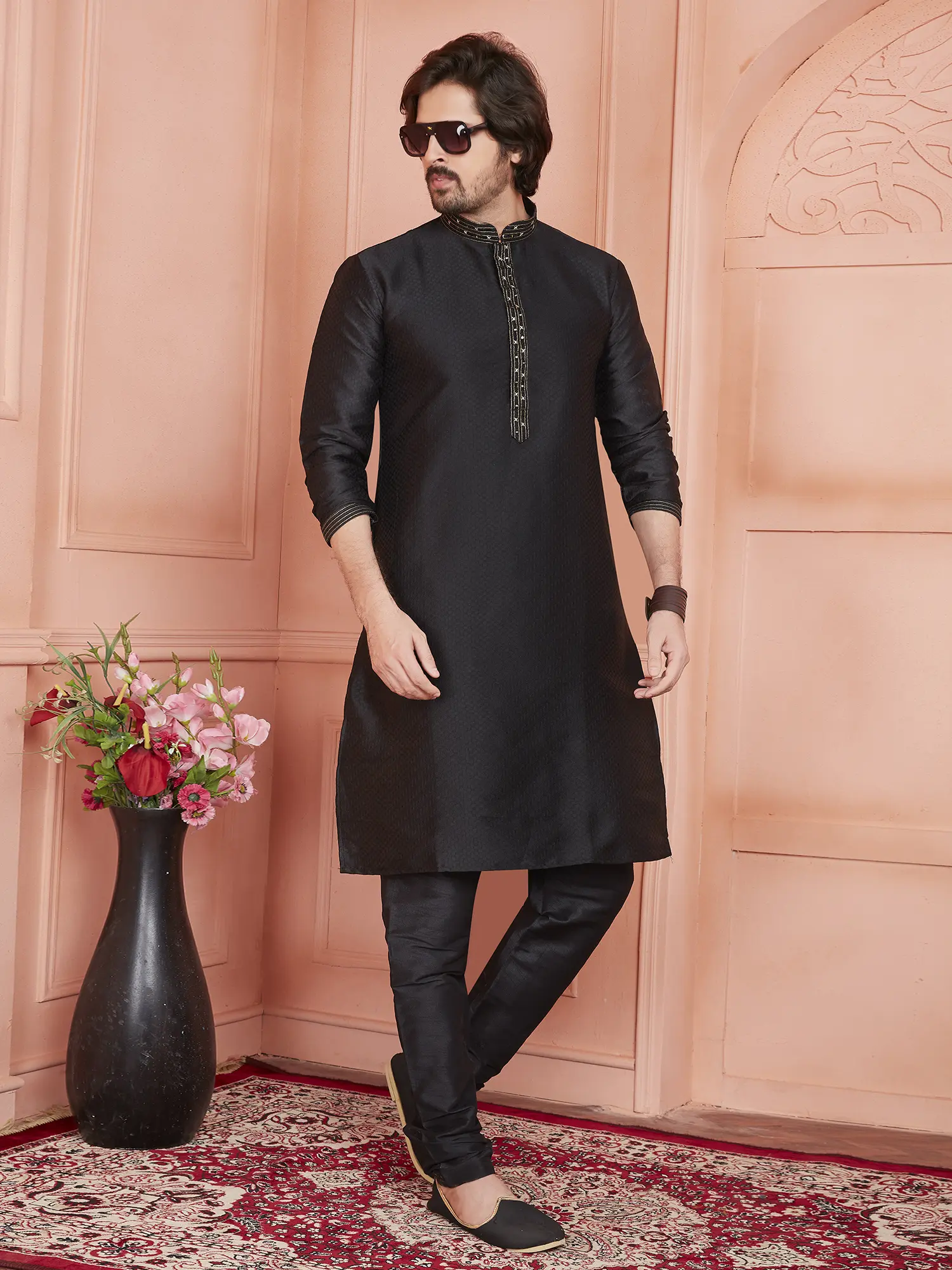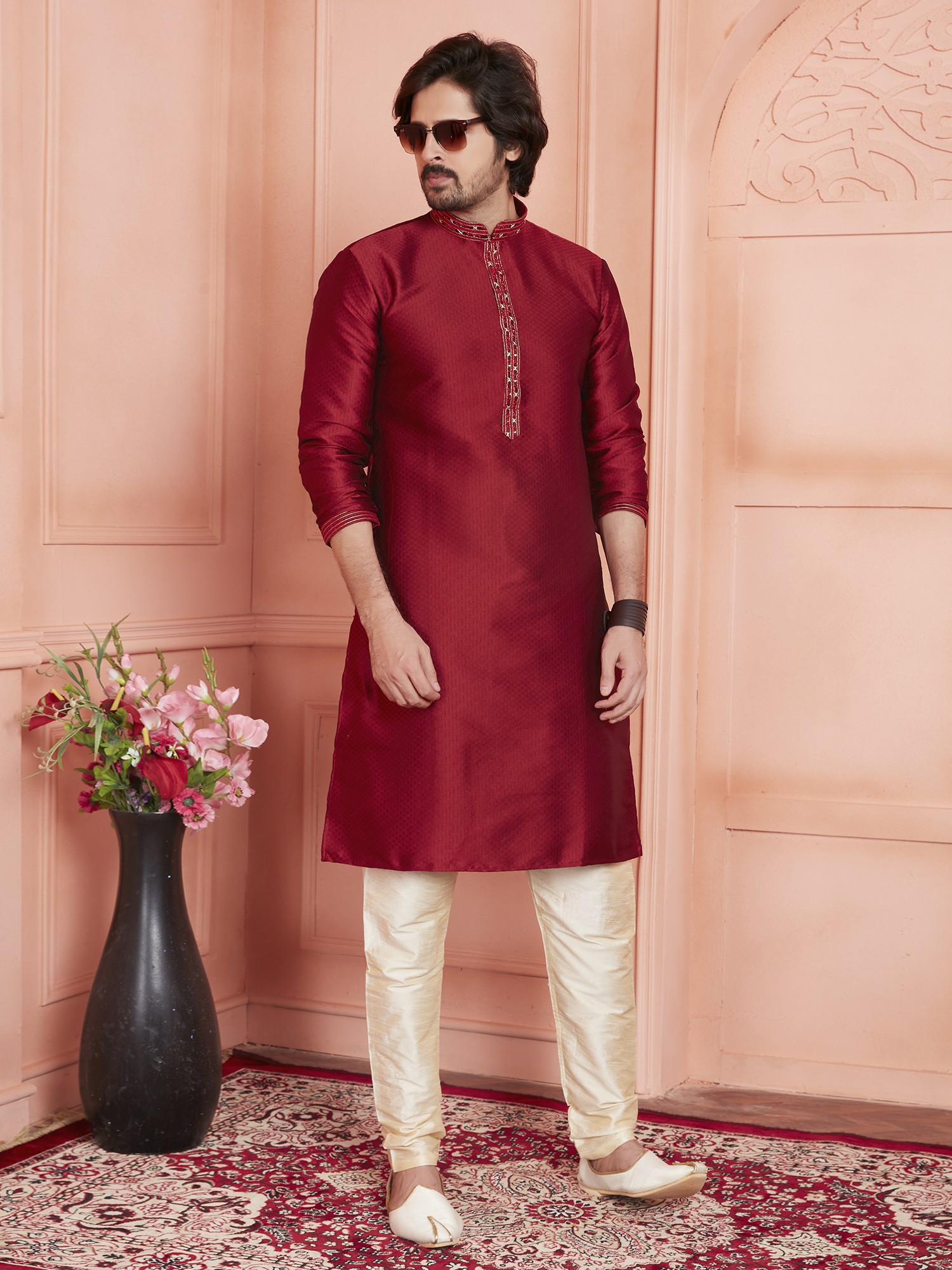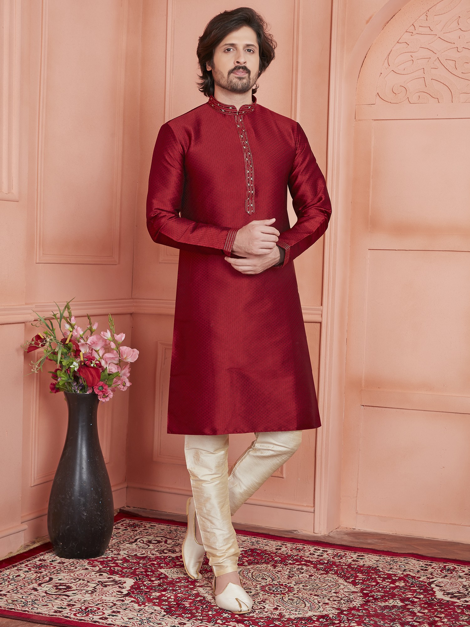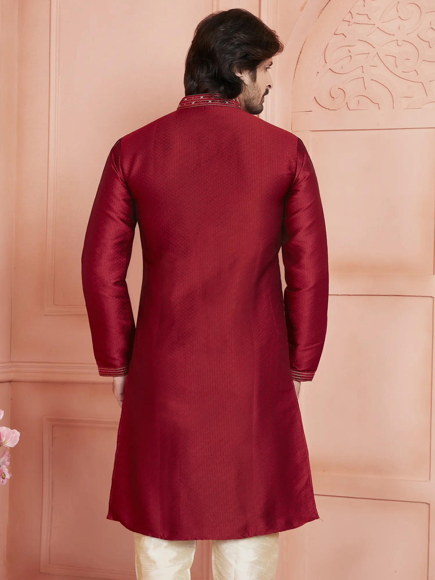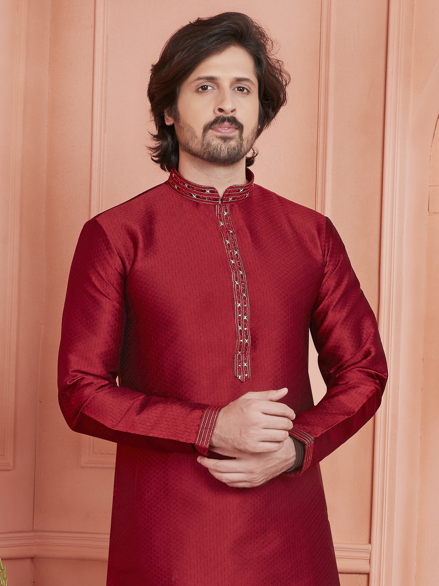 Ivory Kurta with Double Color Embroidery All-Over
