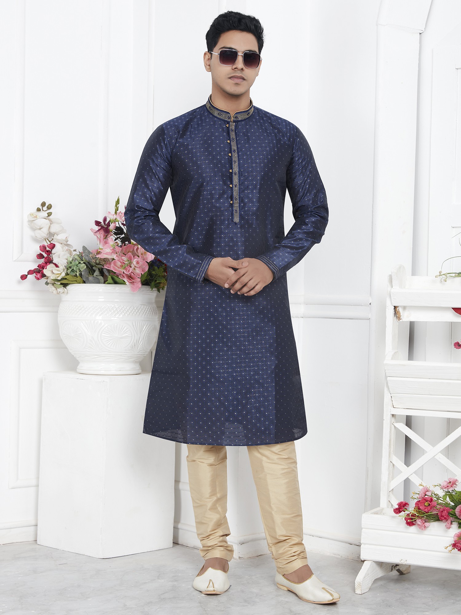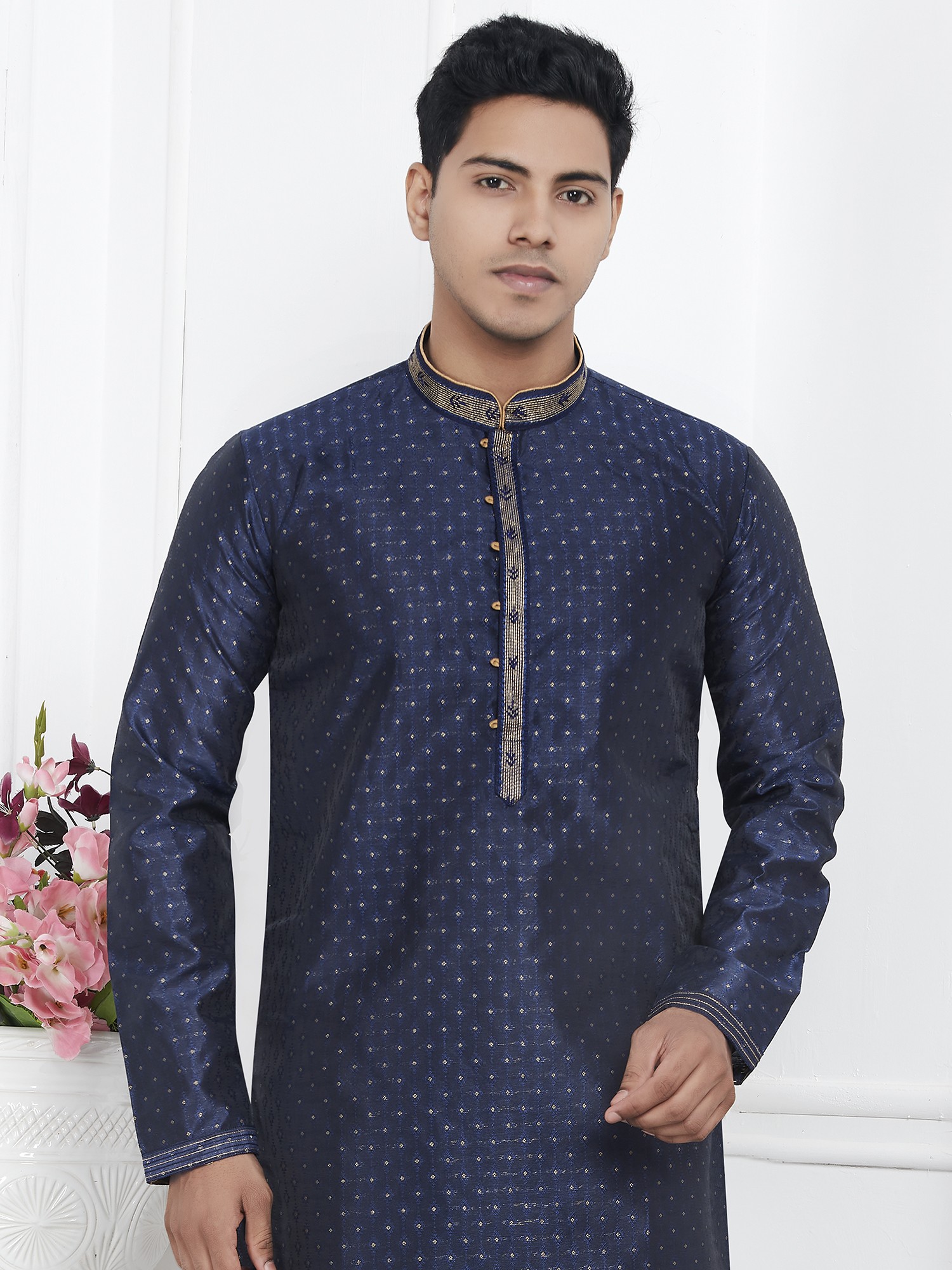 Plain Kurta Pajama Set with Zigzag Weave in Self and Embroidery on Neck
