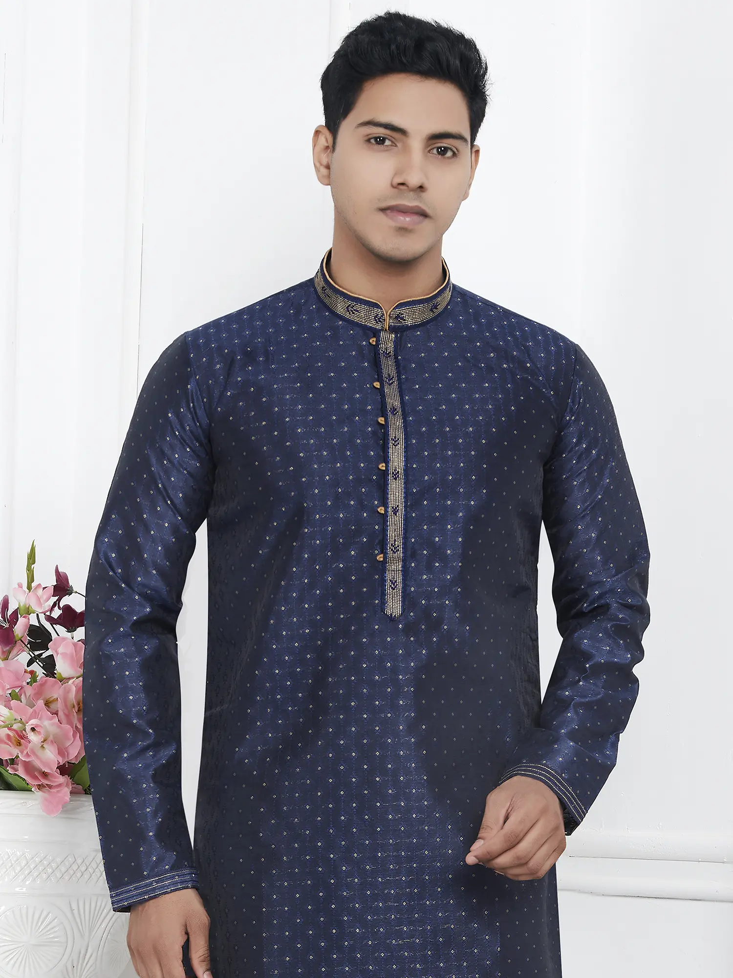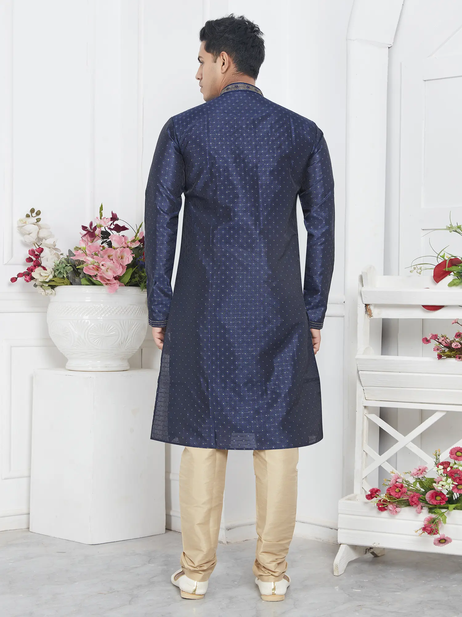 Wedding Kurta Pajama Set with All-Over Woven Floral Motifs in Self