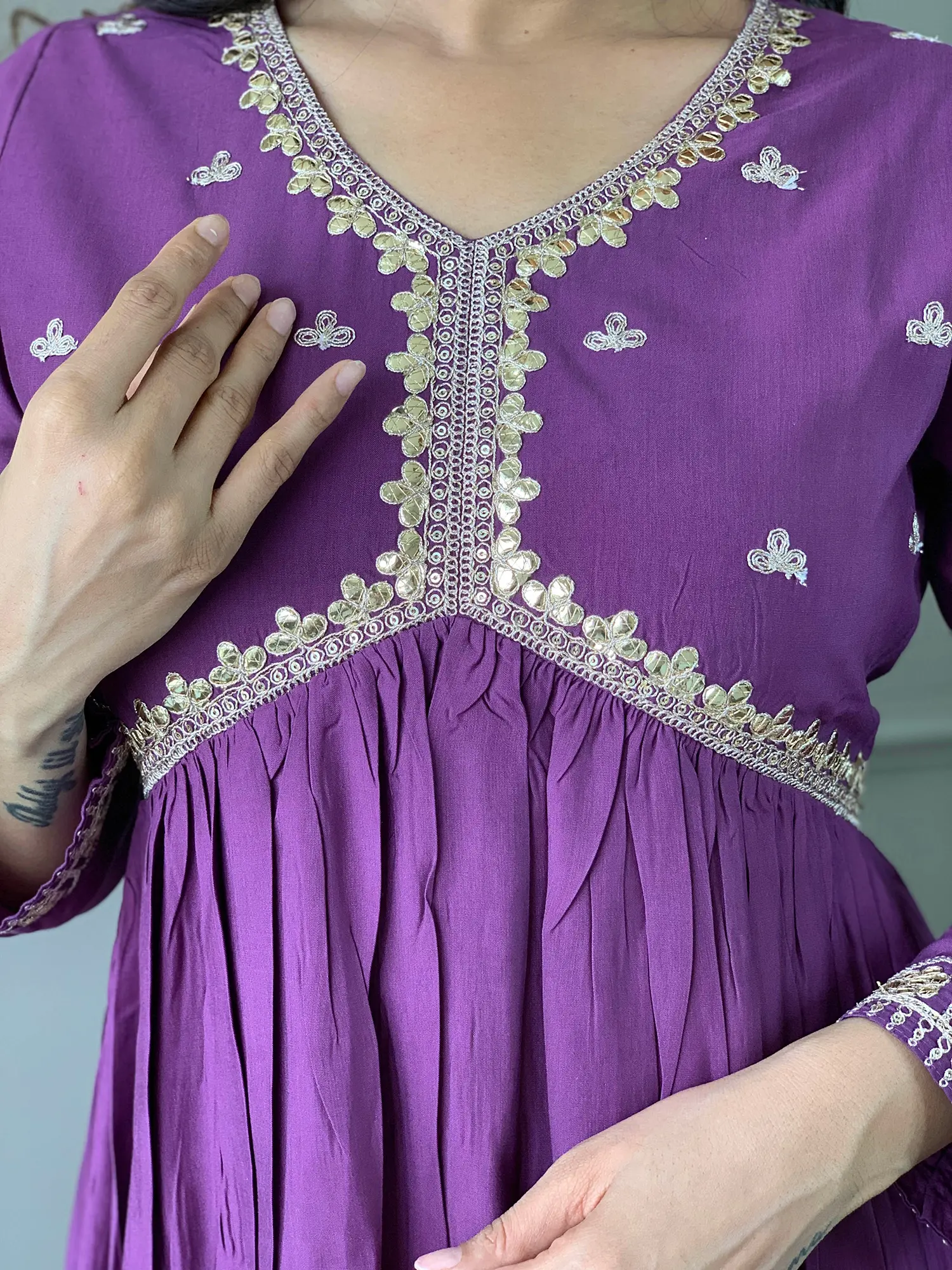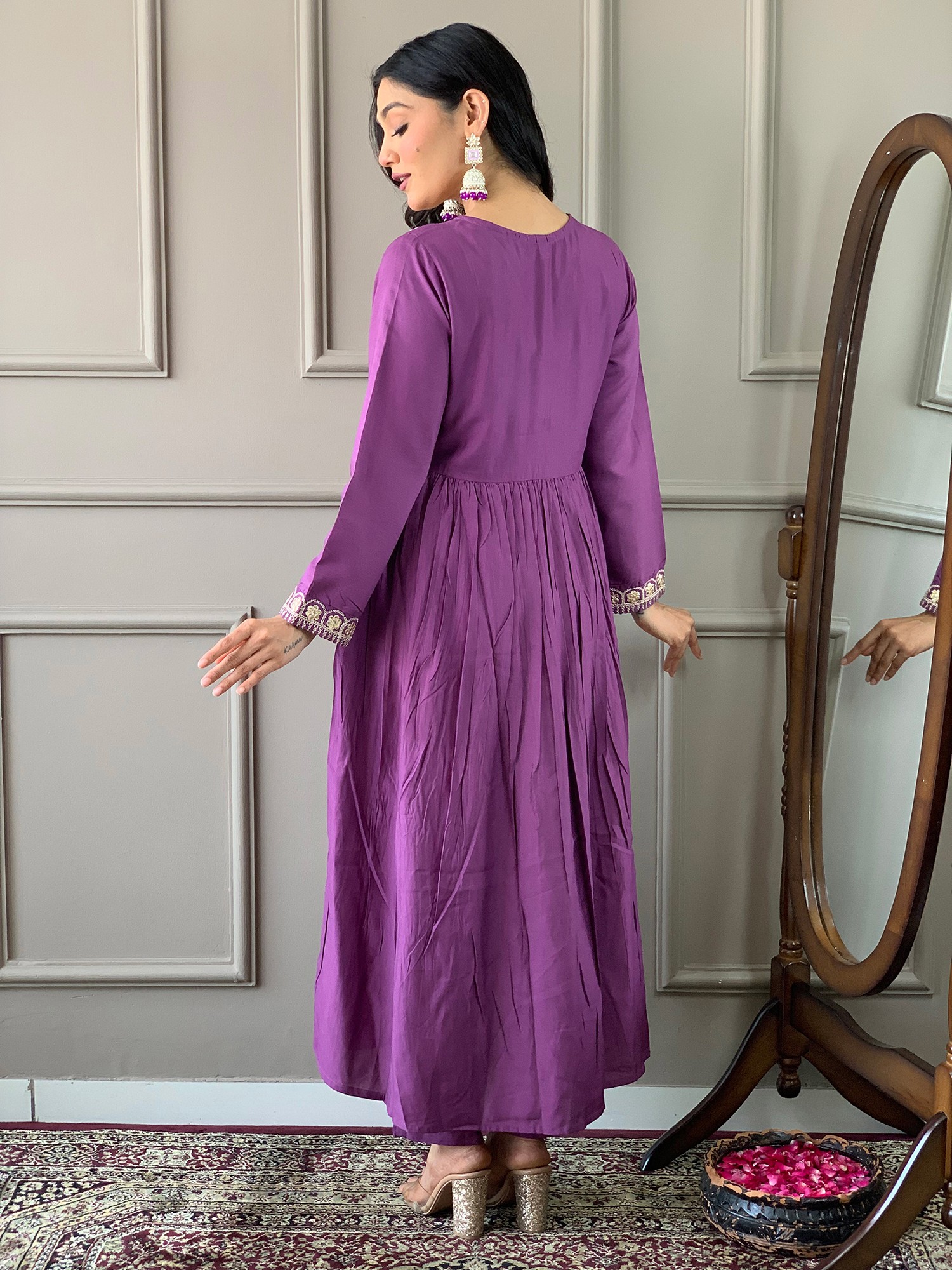 This Anarkali kurta set is perfect for a range of occasions, from festive celebrations to formal gatherings. Its timeless design and elegant details make it an ideal choice for weddings, parties, and other special events. Dress it up with statement jewelry and heels for a glamorous evening look, or pair it with simple accessories for a more understated yet chic daytime ensemble. Whether you're attending a traditional ceremony or a modern soirée, this kurta set will ensure you make a lasting impression.