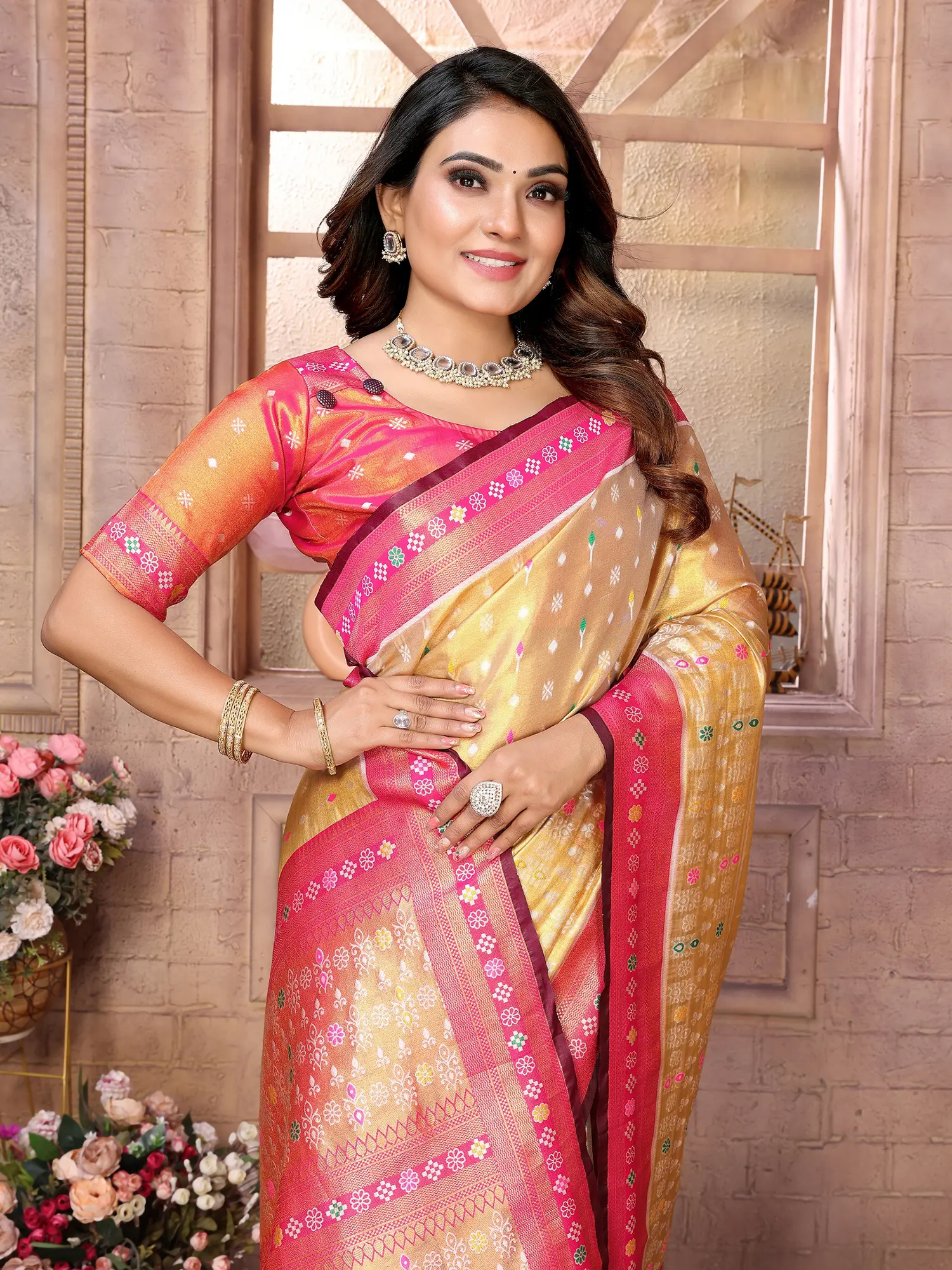 Lichi Silk Floral Motifs Weaving Work Festive Wear Saree With Matching Blouse