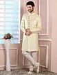 Imported Jacquard Silk Indo Western Sherwani With Dupion Art Silk Aligarhi Pant For Wedding Groom Men
