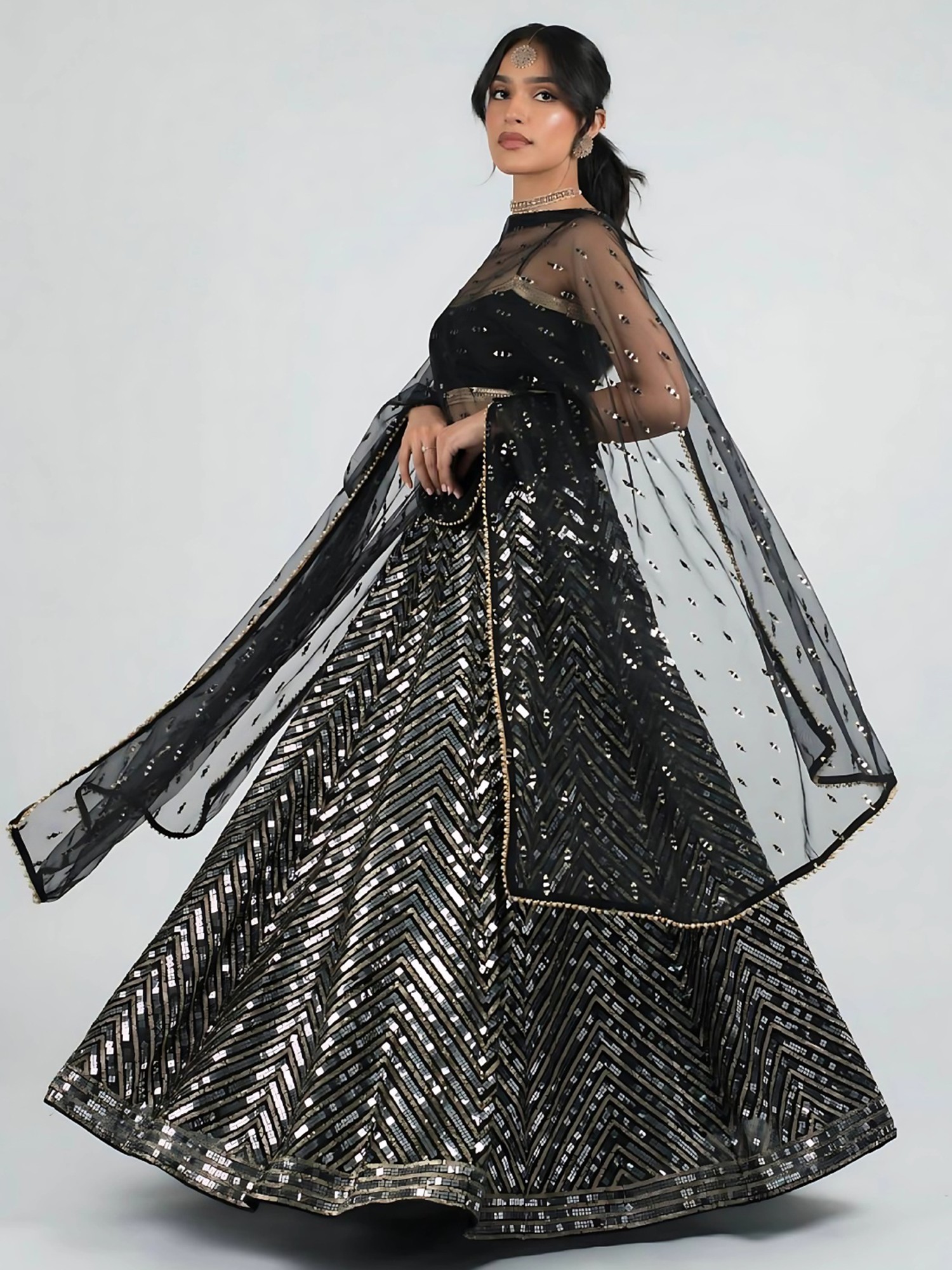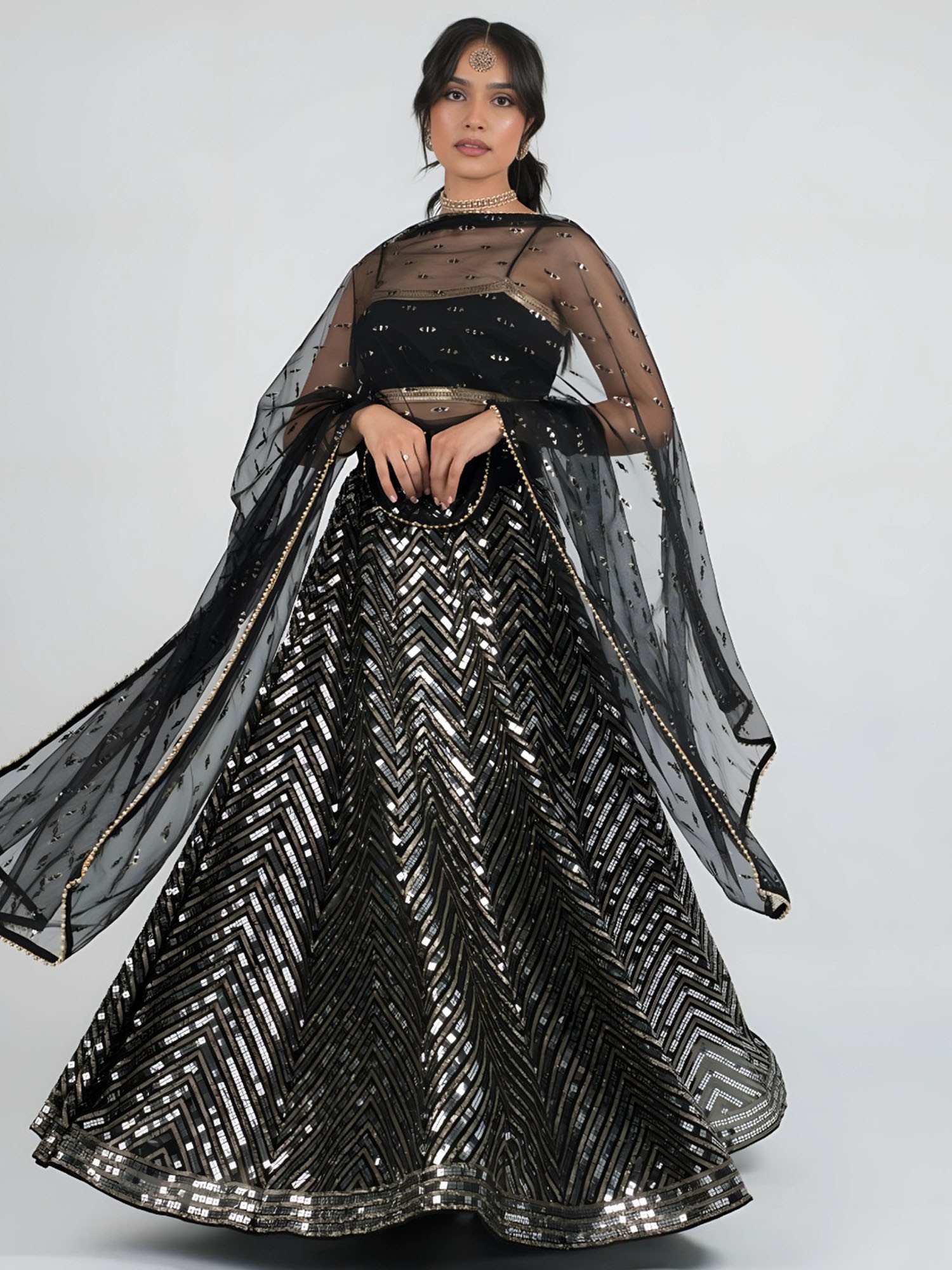 Unveiling Timeless Elegance: The Black Georgette Lehenga Set