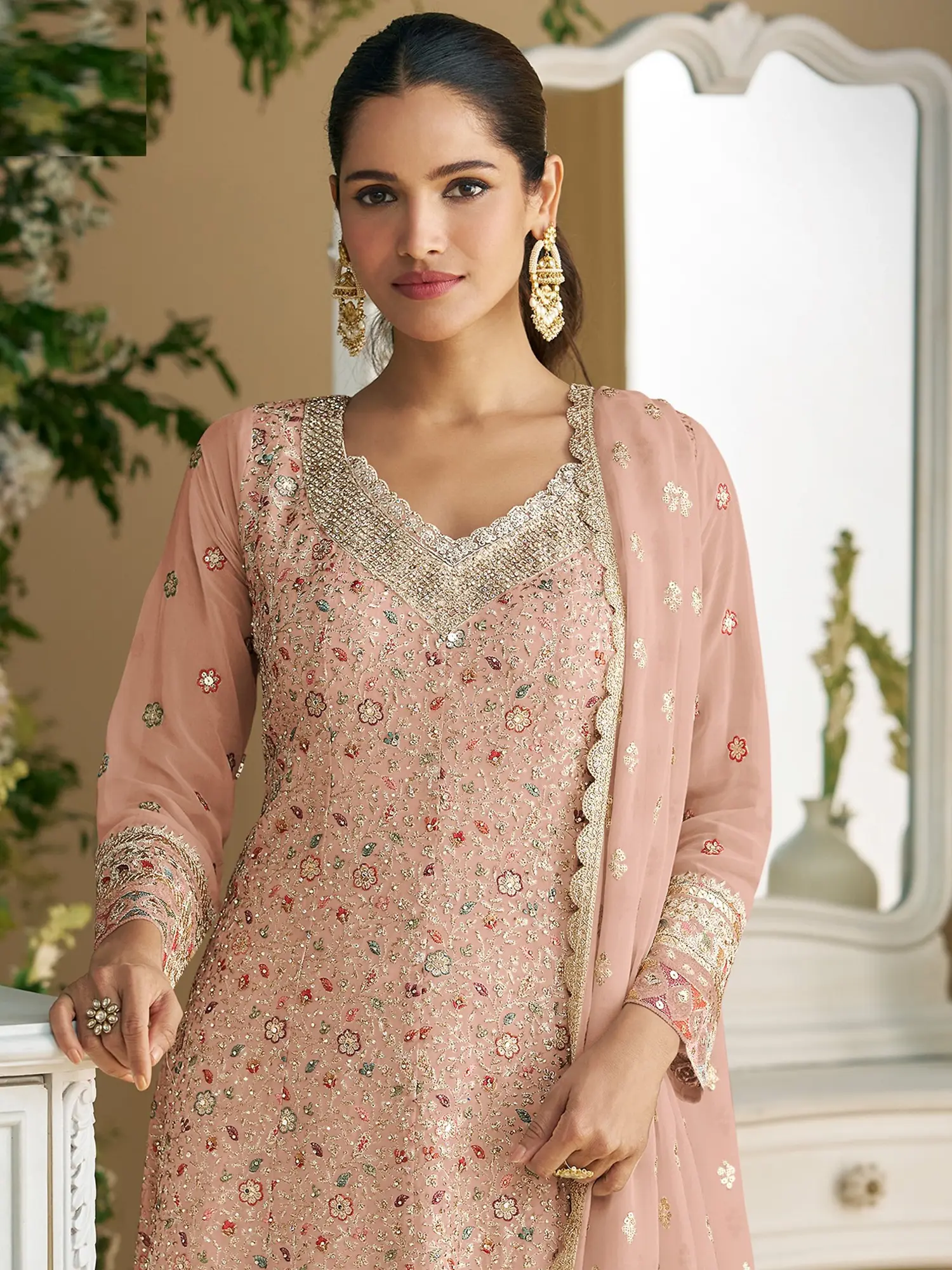 Step into a world of refined glamour and modern sophistication. This ensemble is designed to make you feel breathtakingly beautiful, whether you're celebrating a joyous occasion or seeking to elevate your everyday style. It offers a perfect blend of traditional charm and contemporary flair, ensuring you radiate confidence and grace.