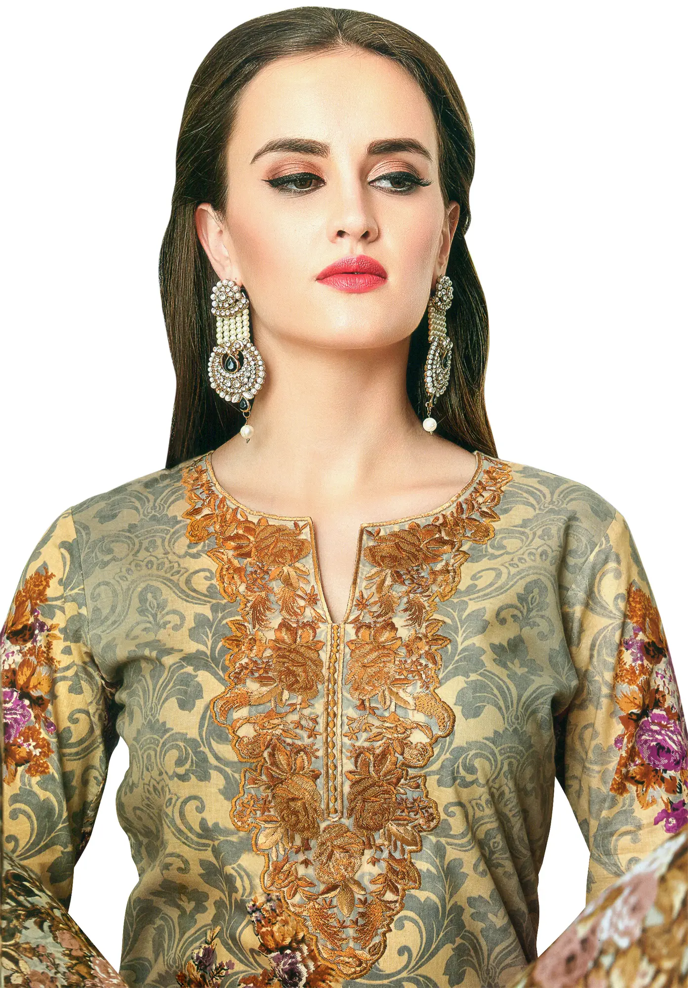 Pine-Bark Long Parallel Salwar Kameez Suit with Zari-Embroidery