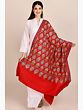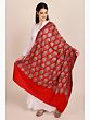 Fall in love with the sumptuous, impeccable appearance of this superfine pashmina stole that elicits chic, beguile and sensual vibes and is curated for maximum comfort. This Red pashmina stole has the power to steal hearts and falls easy on the eye. Induce yourself in this luxurious red hued shawl designed in Kashmir which is imbibed in specially hand crafted floral motifs. By placing the beautiful shawl on your shoulder, you embrace its warmth and coziness. This gorgeous shawl is sure to pull you closer with its enchanting aura.