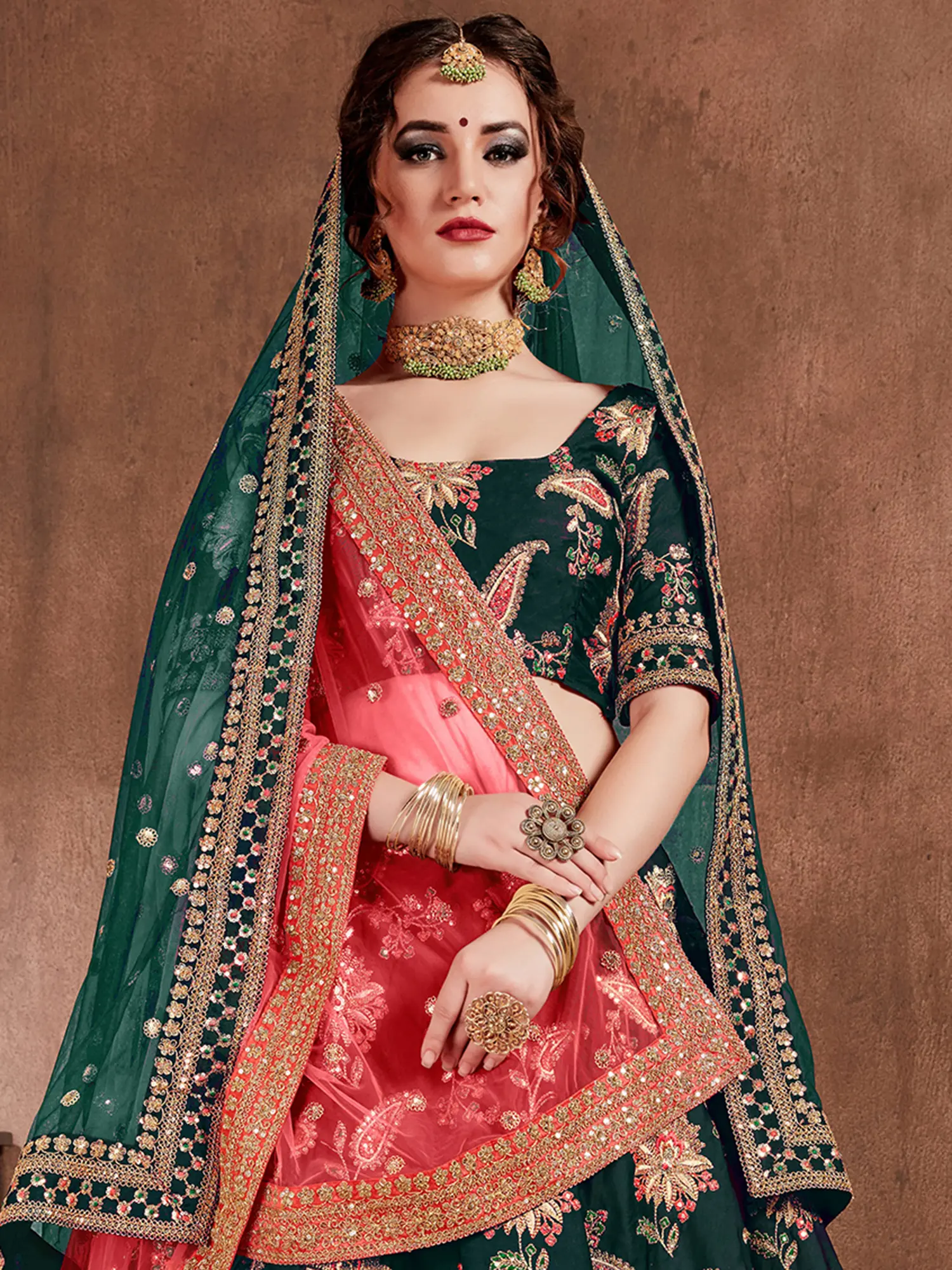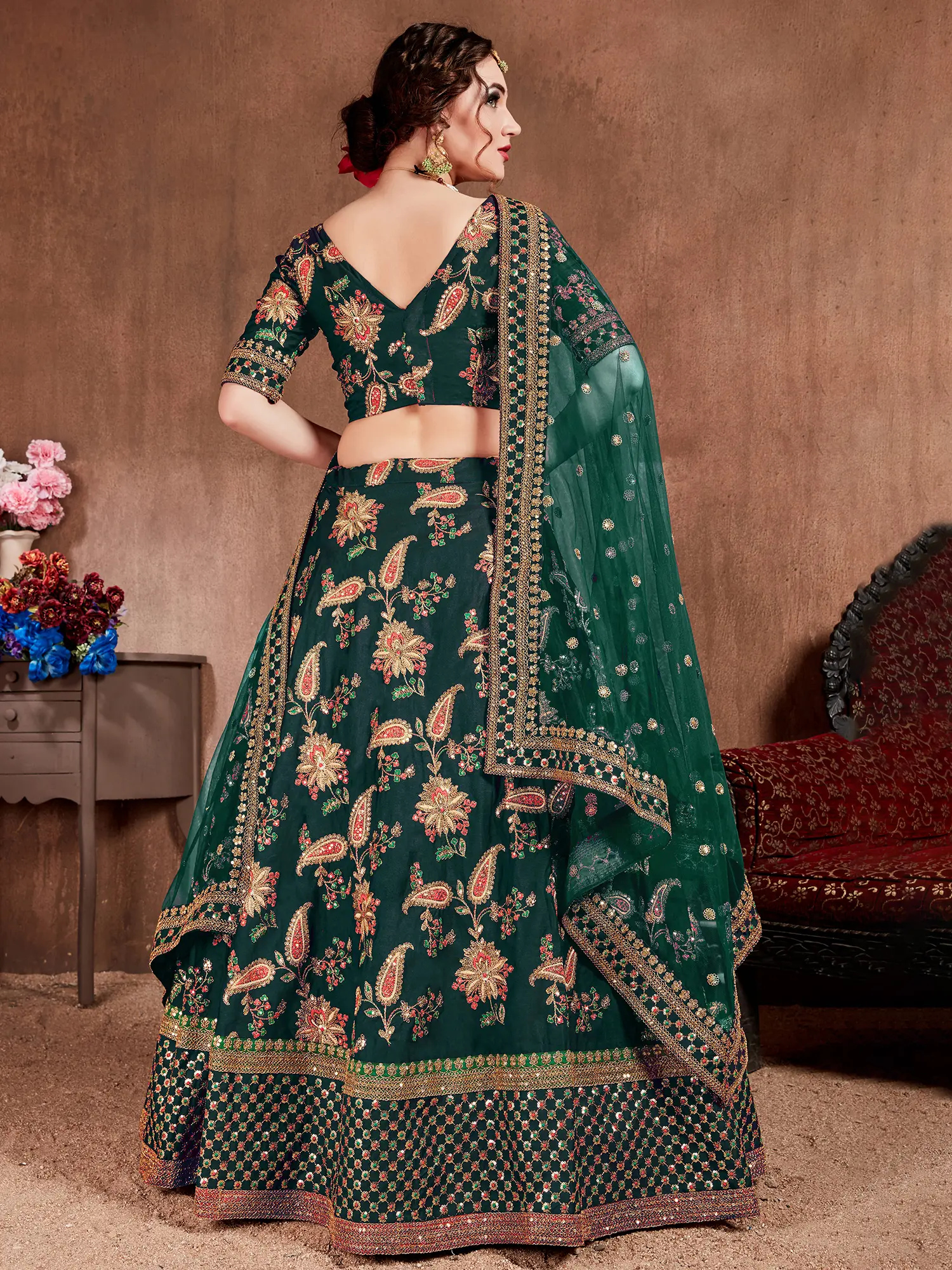 Floral Heavy Embroidery And Sequins Work Embellished Silk Lehenga Choli With Soft Net Dupatta