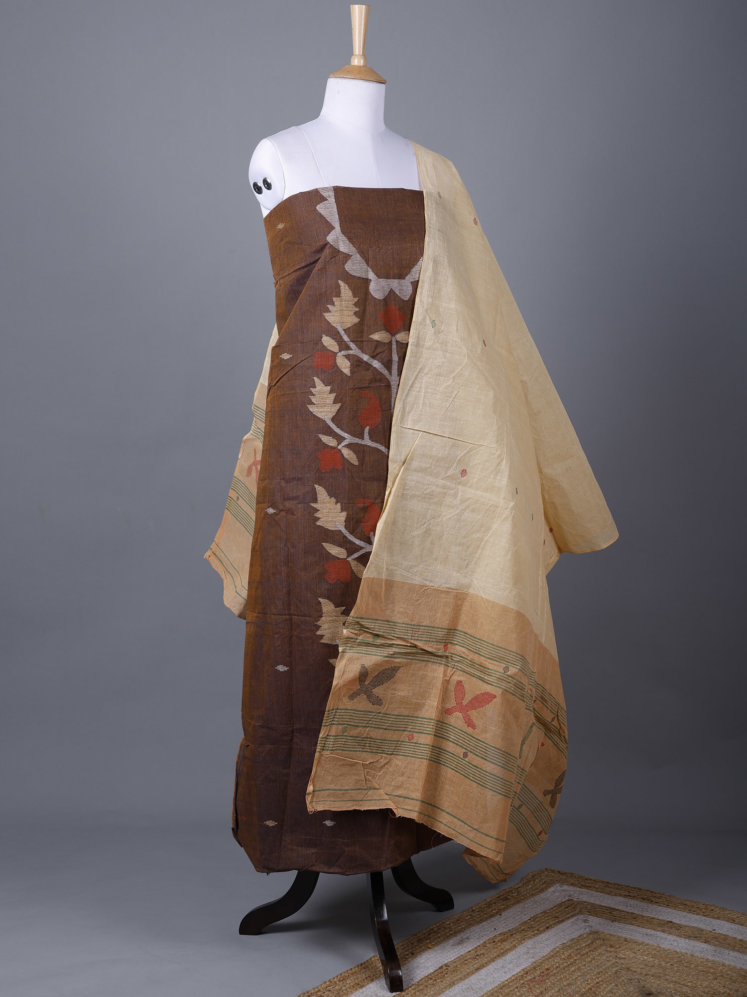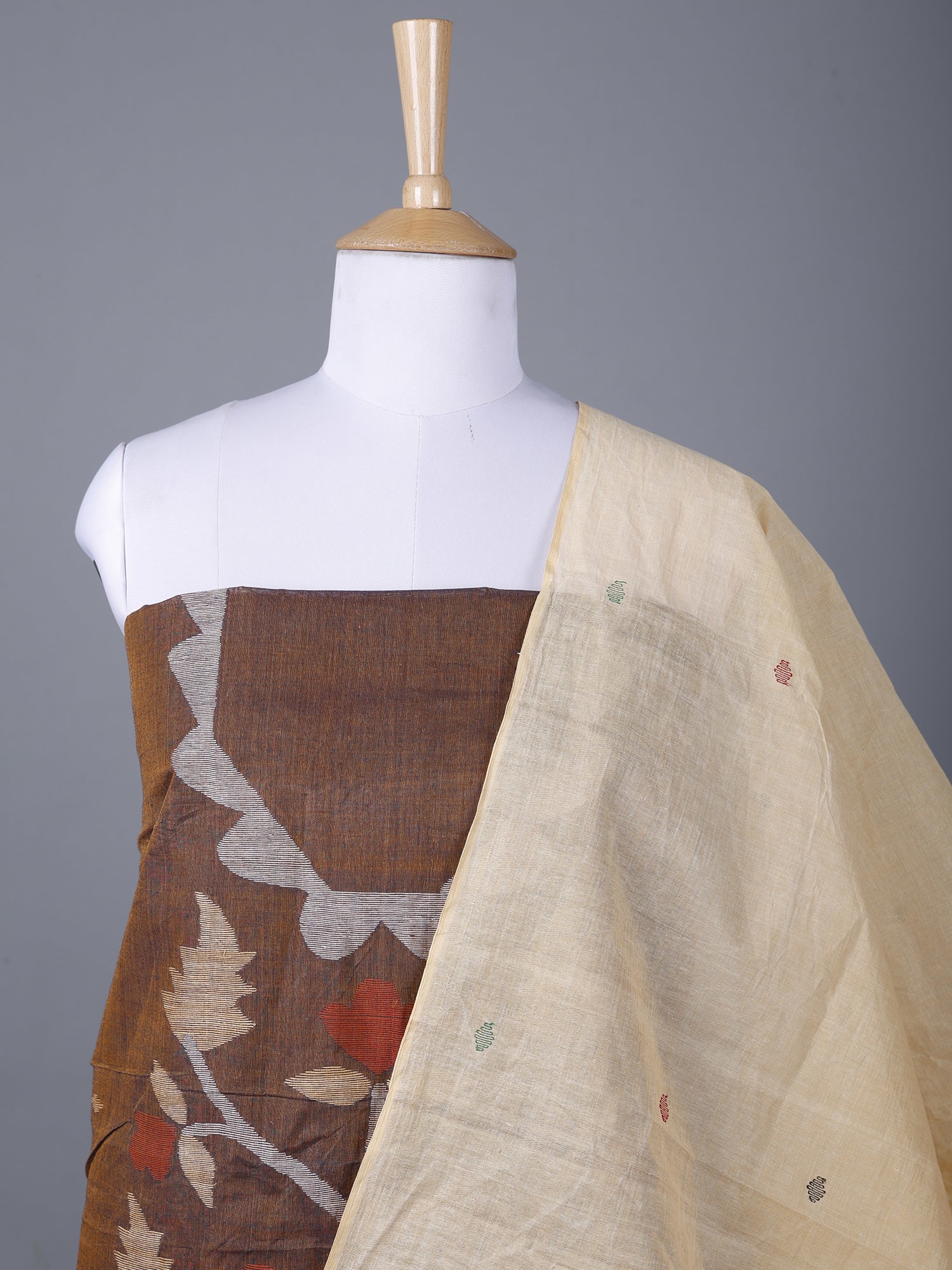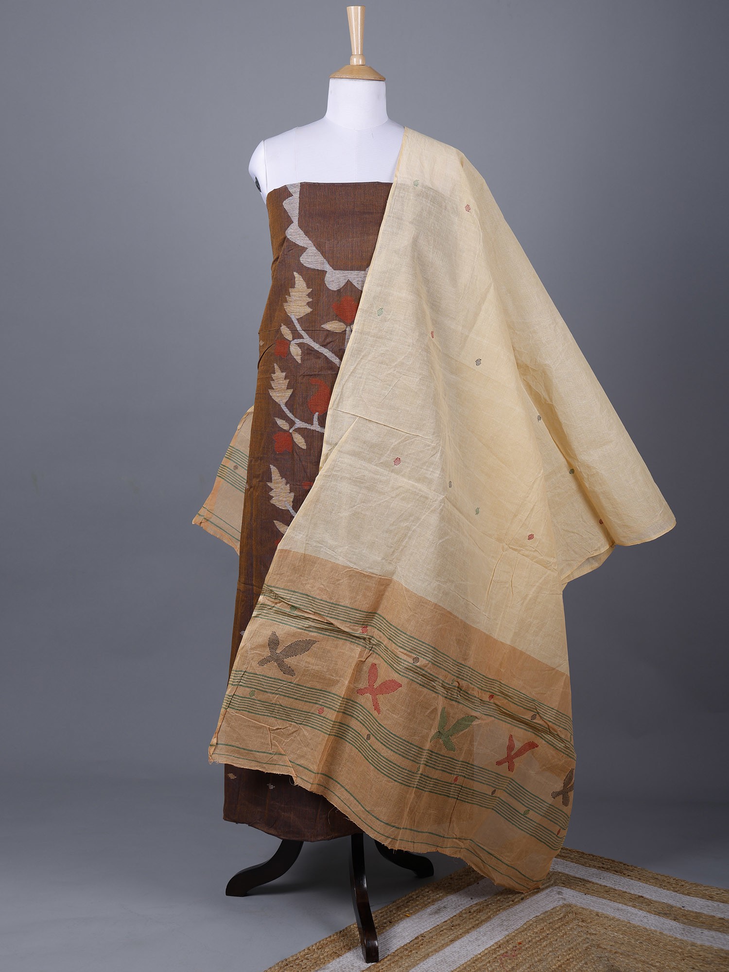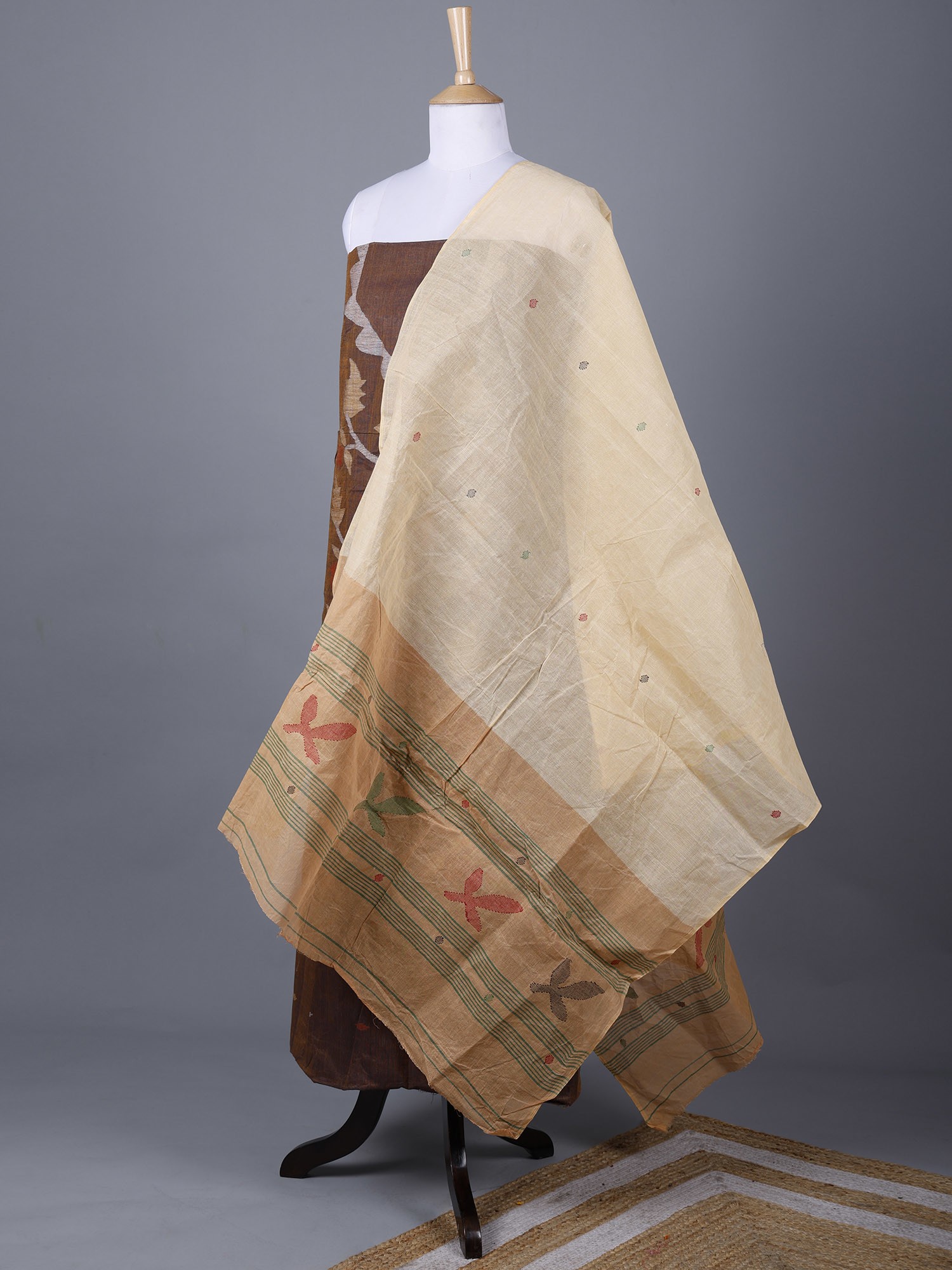 Tangail Salwar Kameez and Dupatta from Bengal with Woven Bootis and Flowers