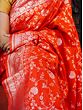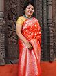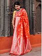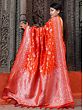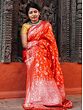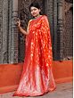 Tangerine-Tango Banarasi Floral Jaal Pattern Pashmina Silk Saree With Mughal Motif Tassel Pallu
