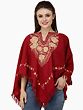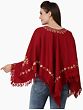 Tango-Red Poncho from Kashmir with Aari Embroidery on Neck and Border