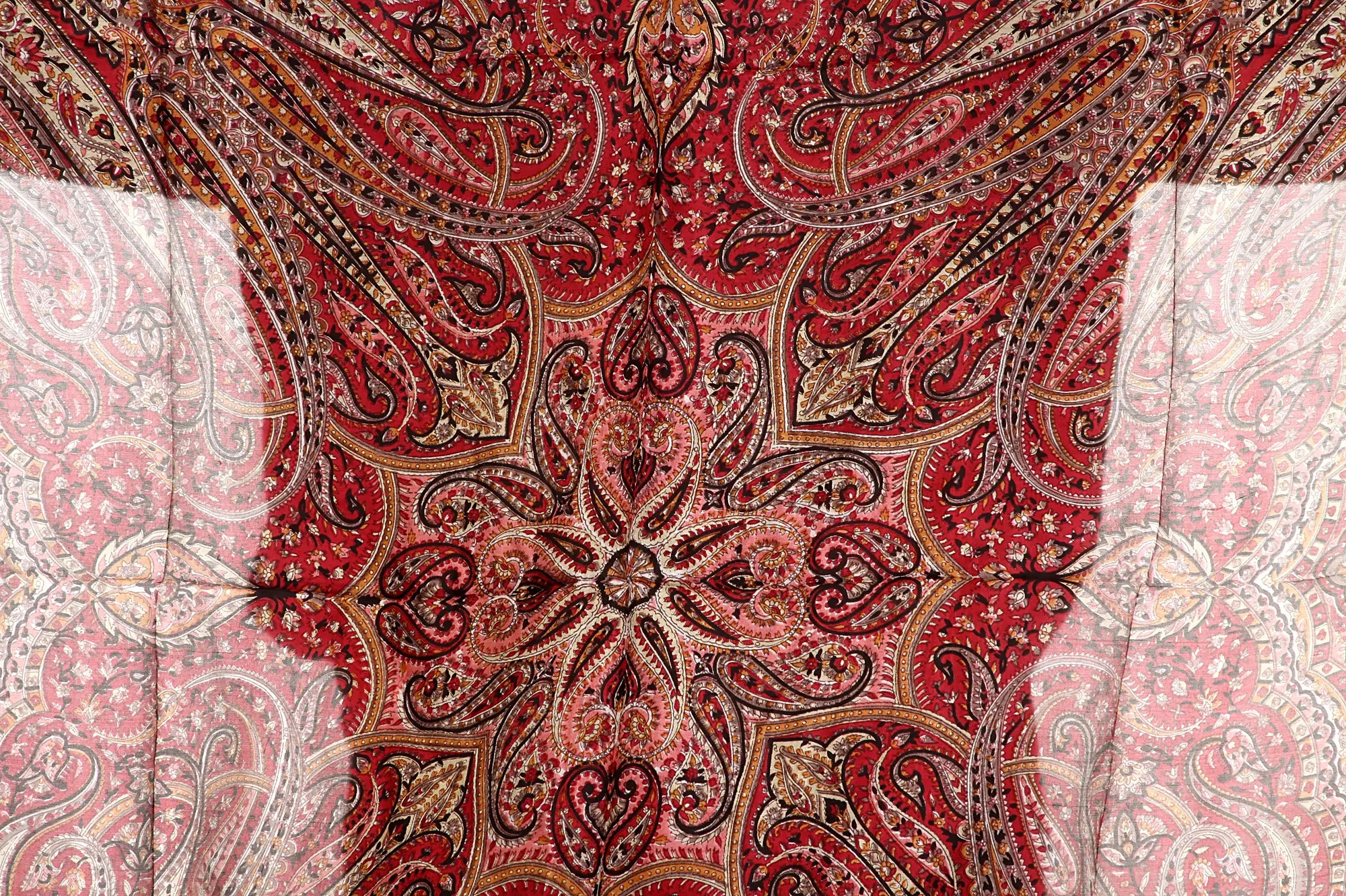 The inherent qualities of pure silk make this scarf not only visually stunning but also a pleasure to wear. Silk is known for its breathability and its ability to regulate temperature, ensuring comfort in a variety of climates. The smooth texture glides over clothing, preventing snags and maintaining its pristine condition. The rich red hue is universally flattering, imbuing the wearer with a sense of warmth and confidence. The intricate details of the paisley design, featuring subtle hints of gold, cream, and deeper reds, add depth and complexity, making it a piece that can be admired from every angle. This scarf is more than just an accessory; it's a wearable work of art that promises to become a treasured addition to your wardrobe, perfect for special occasions or simply for adding a touch of refined luxury to your everyday style.