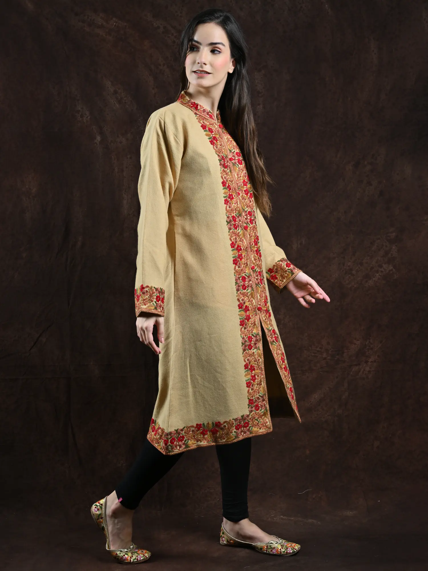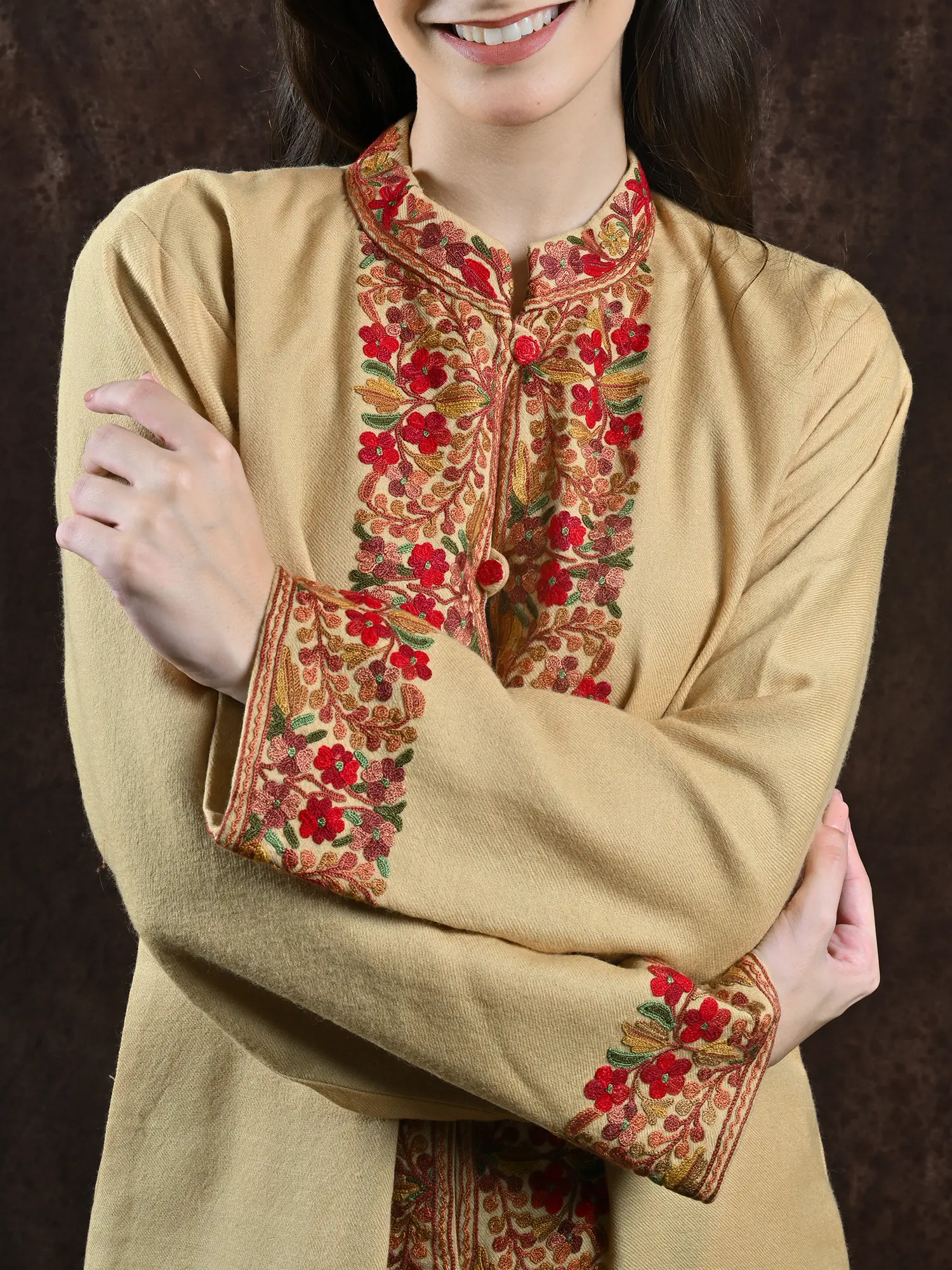 Haute-Red Machine Spun Jamawar Shwal With All-Over Handwoven Silk Embroidery
