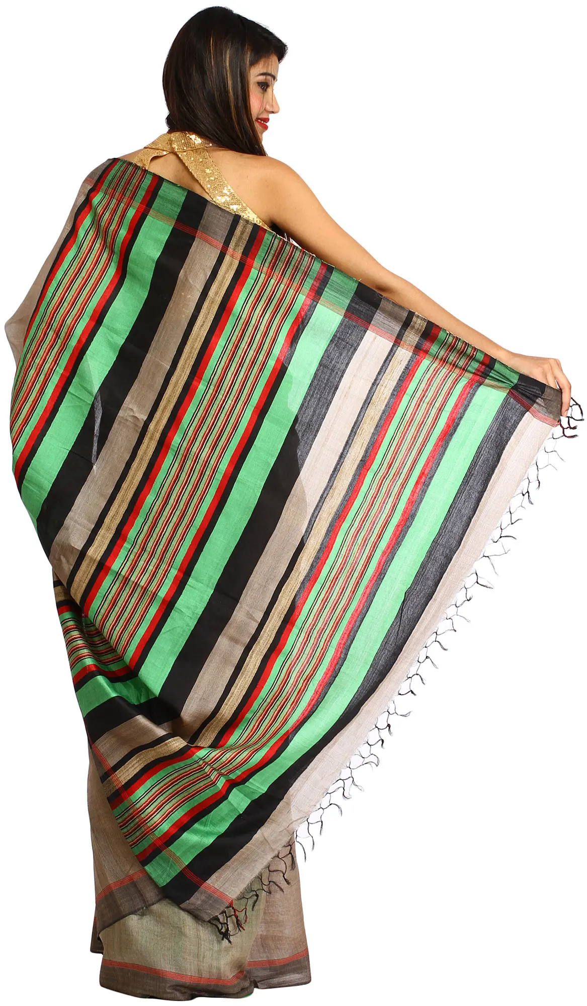 Almond-Oil and Black Choli from Jharkhand with Block-Printed Paisleys