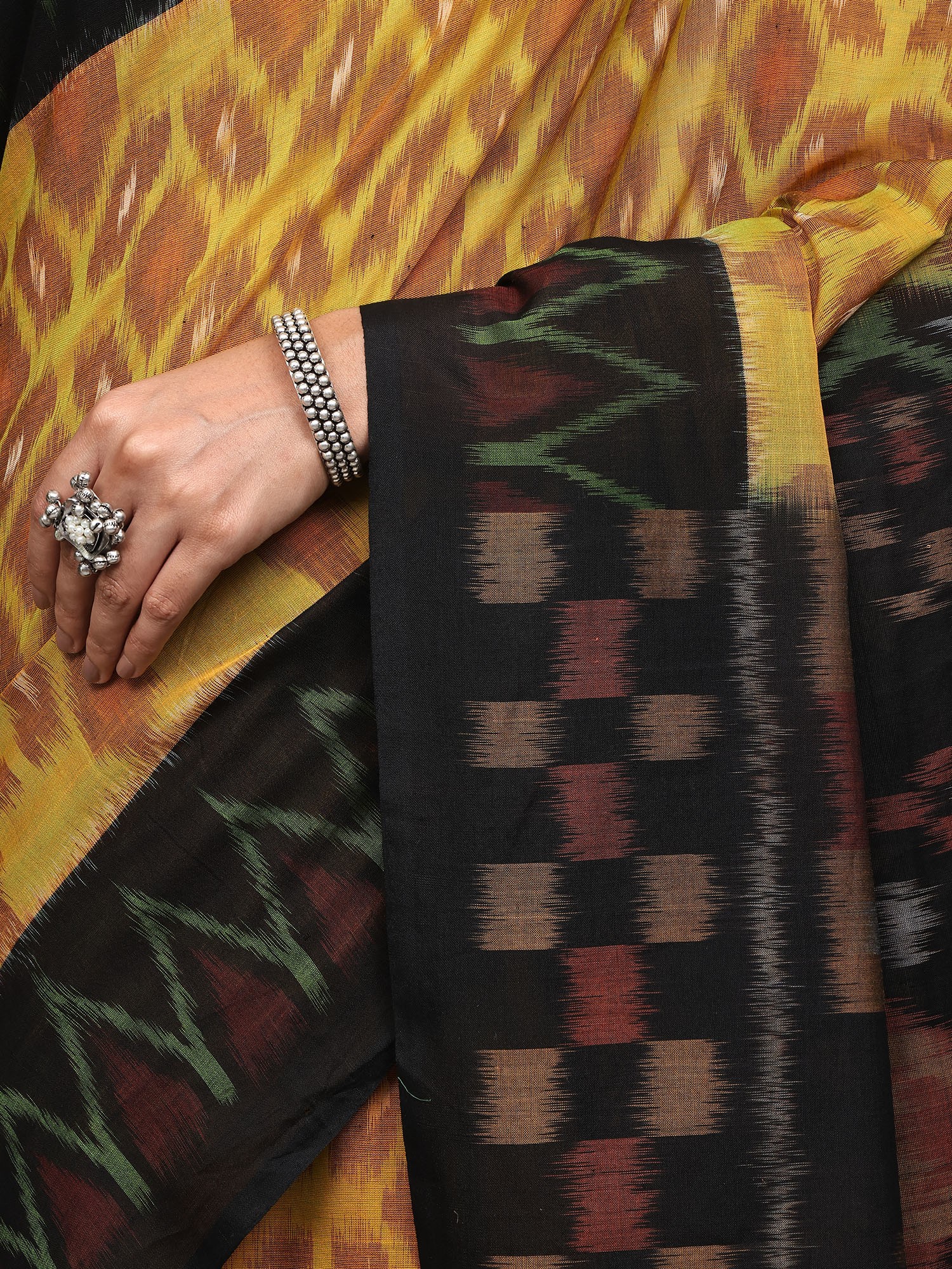 Port-Royale Pure Cotton Ikat Handloom Saree from Sambalpur with Rudraksha Woven Border