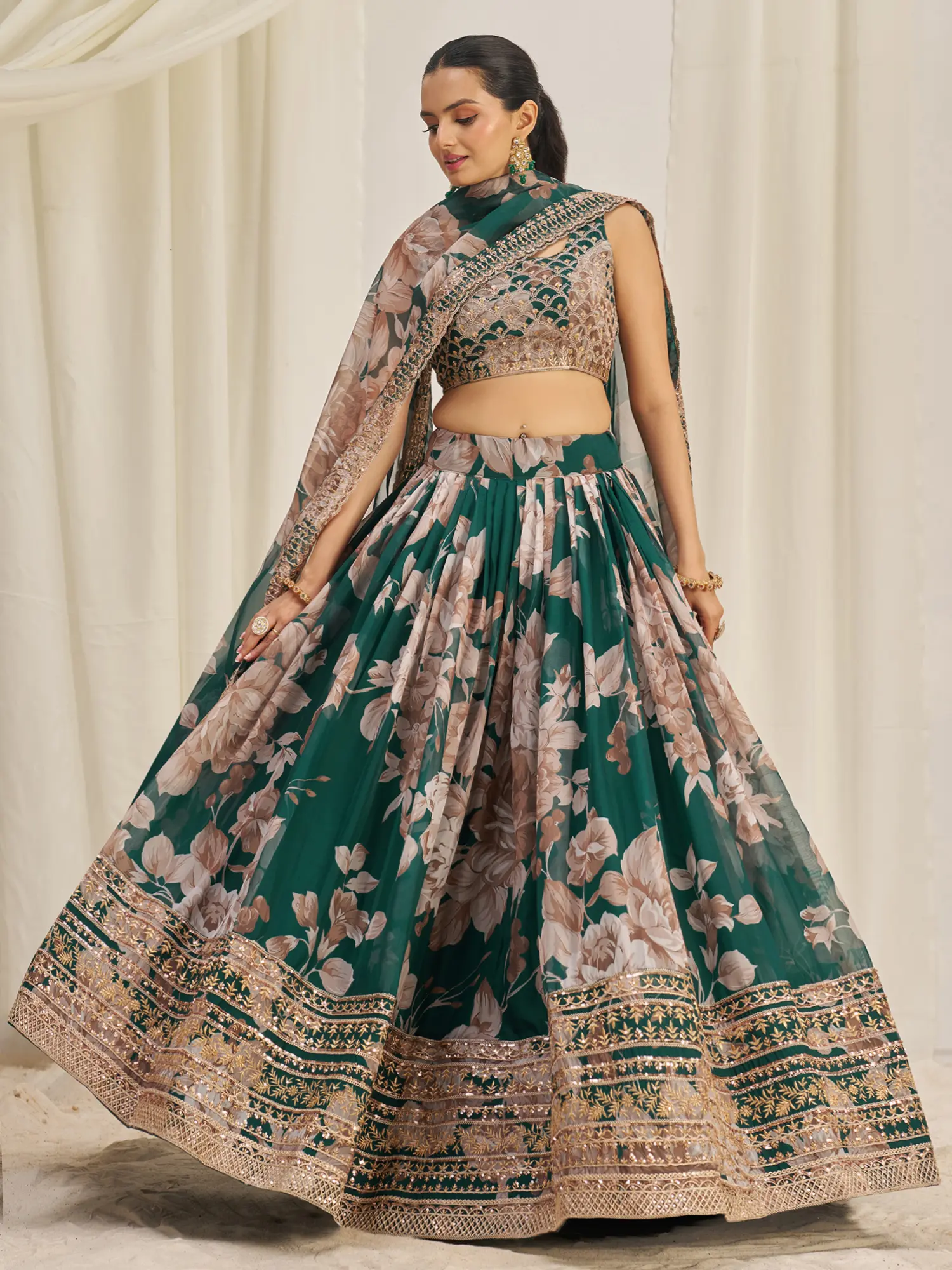 Multi-Colored Lehenga Choli from Rajasthan with Embroidered Flowers and Dori