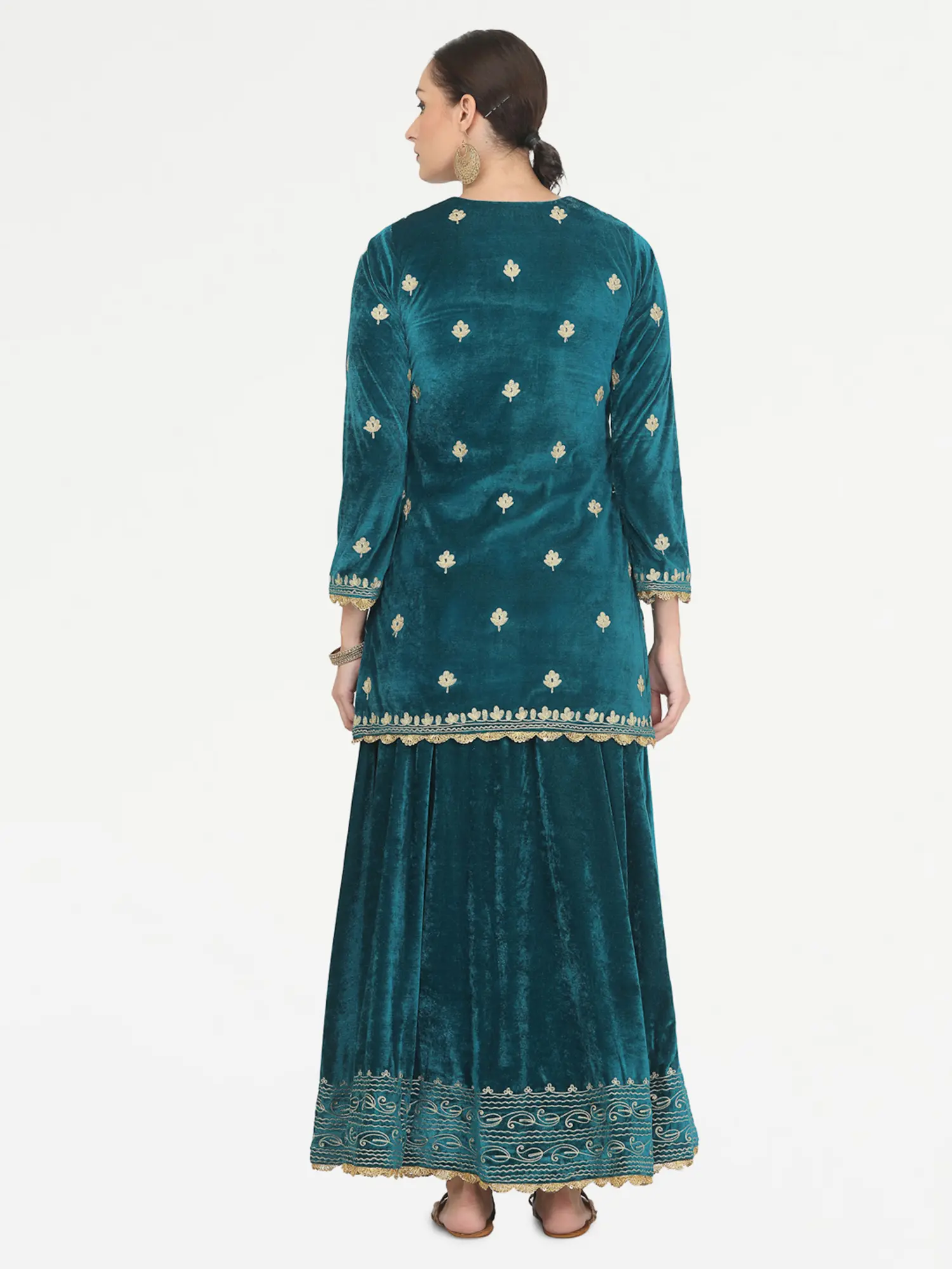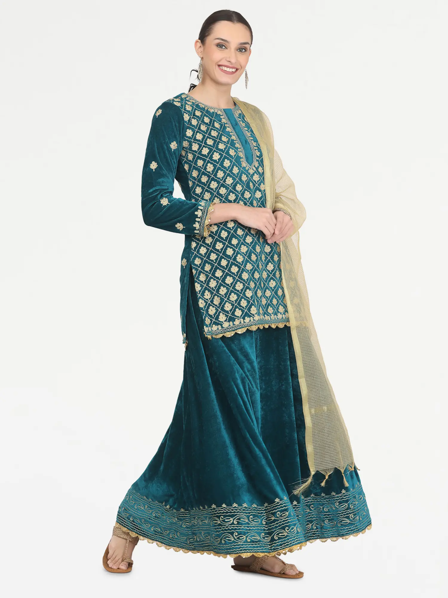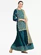 Bottle-Green Net Beads and Golden Thread Embroidery Lehenga Choli with Cutwork Dupatta
