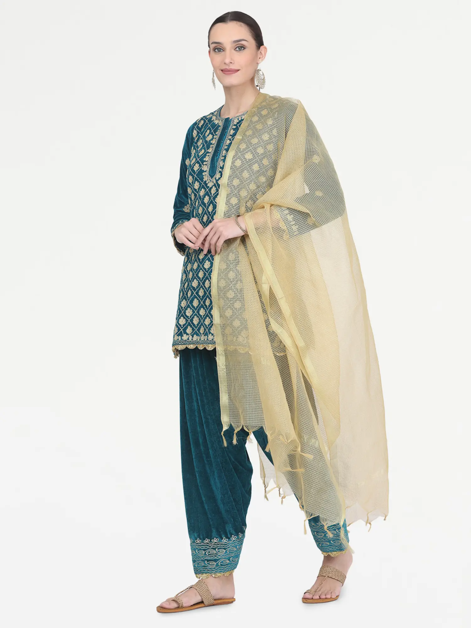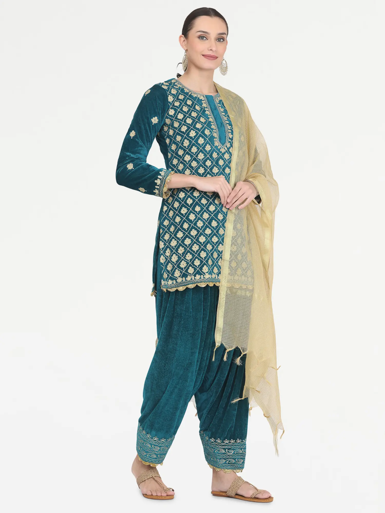 Silk Stunning Sequins And Thread Embroidery Work Salwar Suit With Floral Dupatta