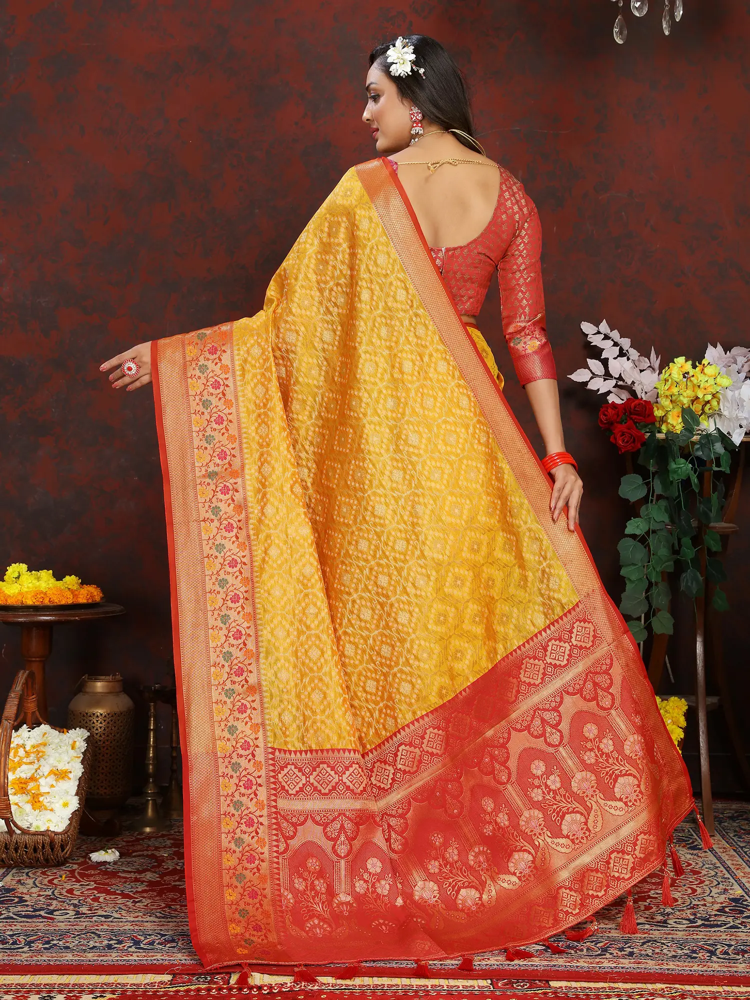 Festive Wear Yellow Silk Saree Featuring Wide Ornate Border
