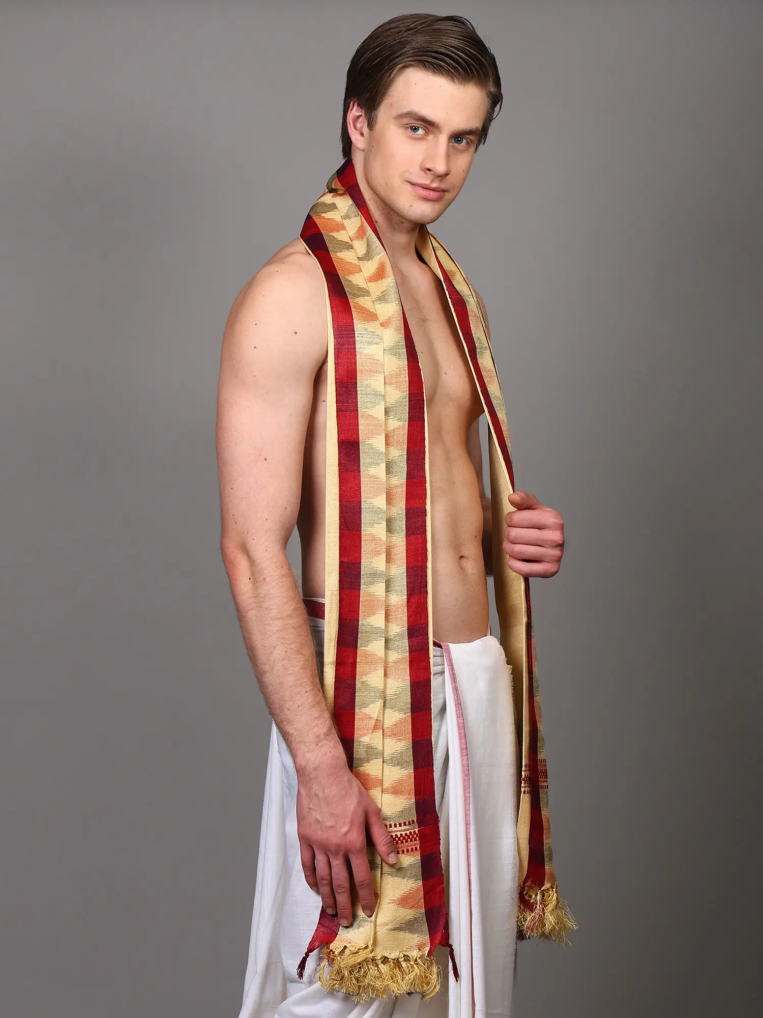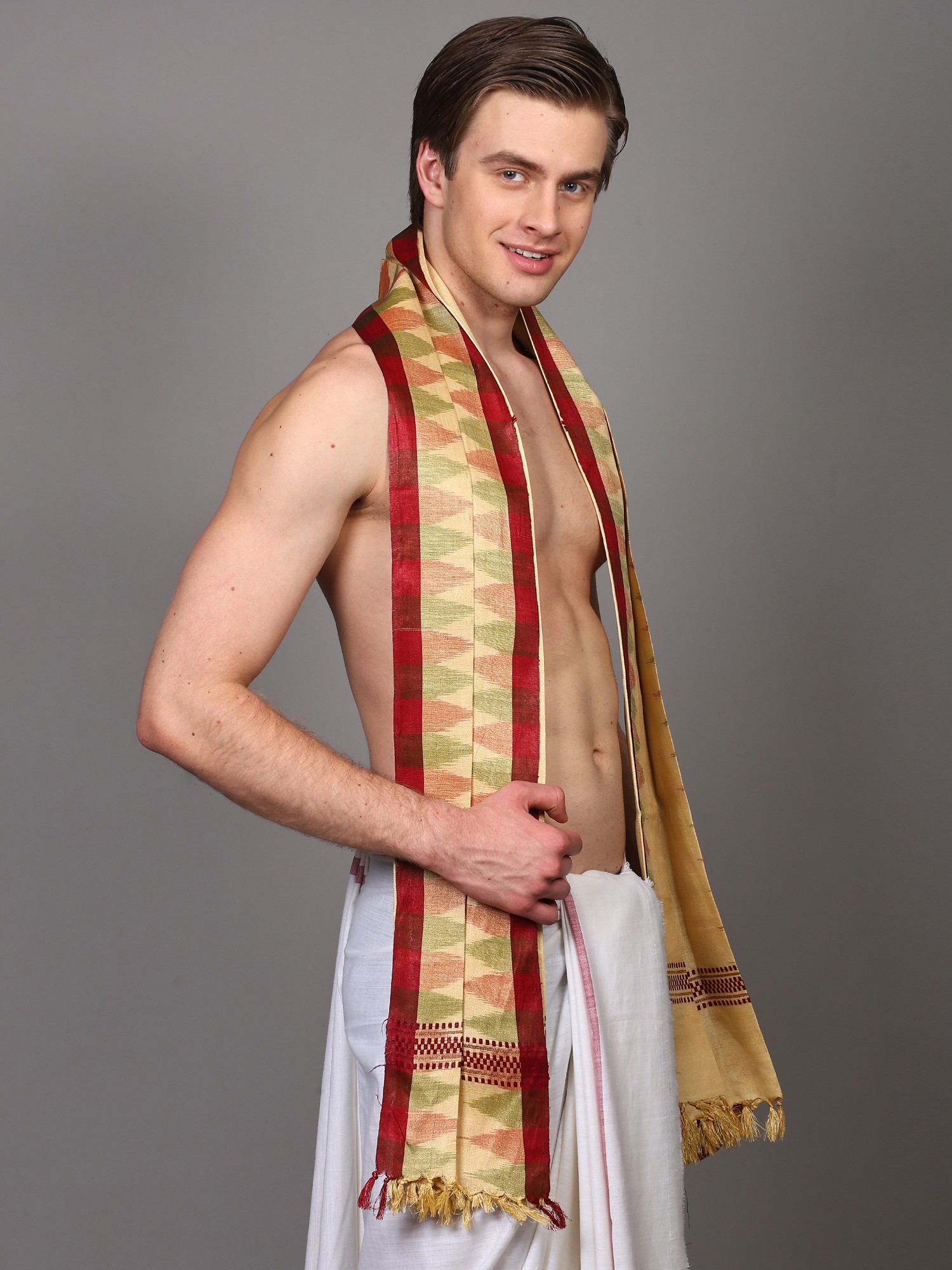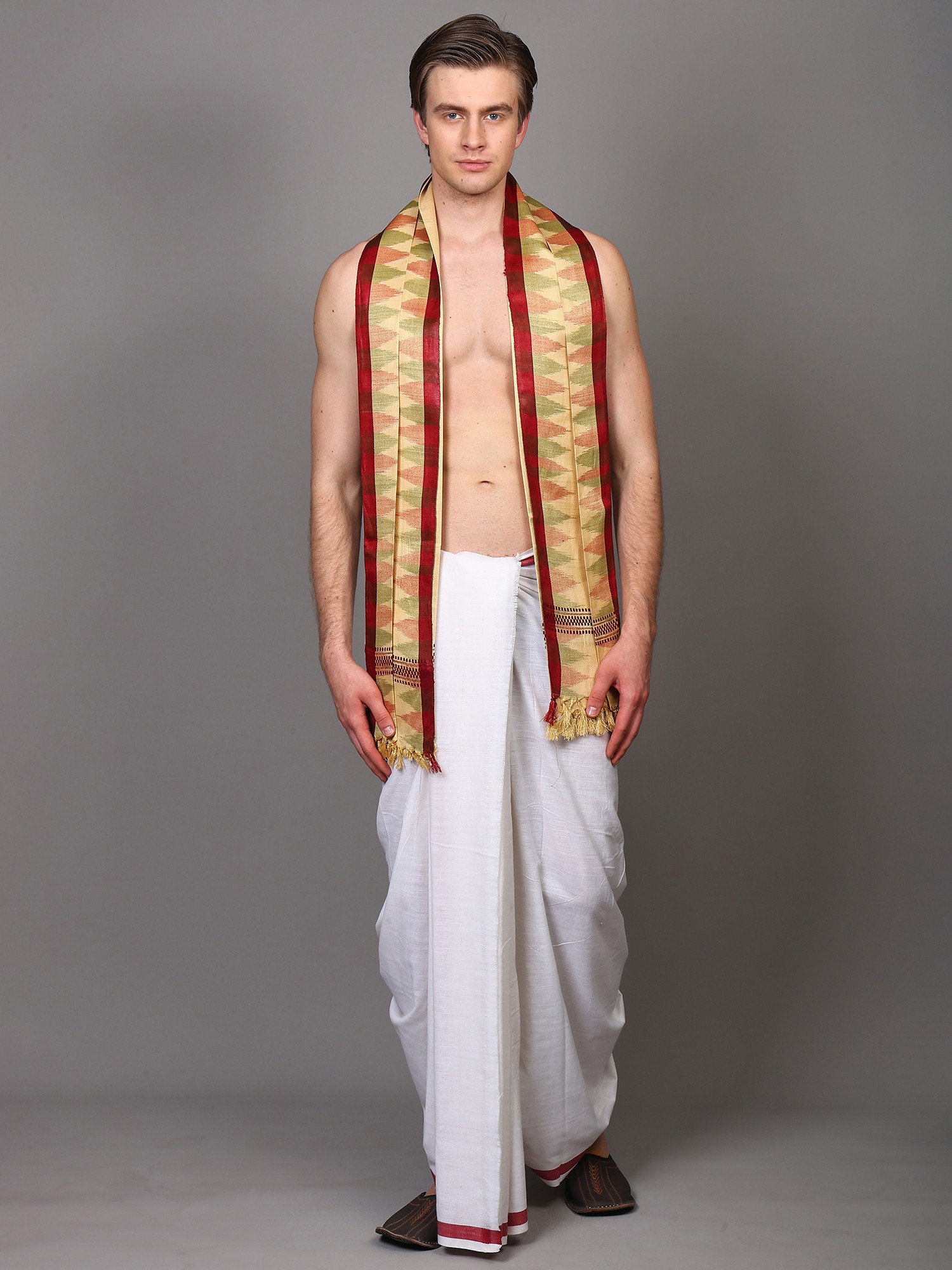 Dhoti and Angavastram set with Golden Woven Paisley on Border