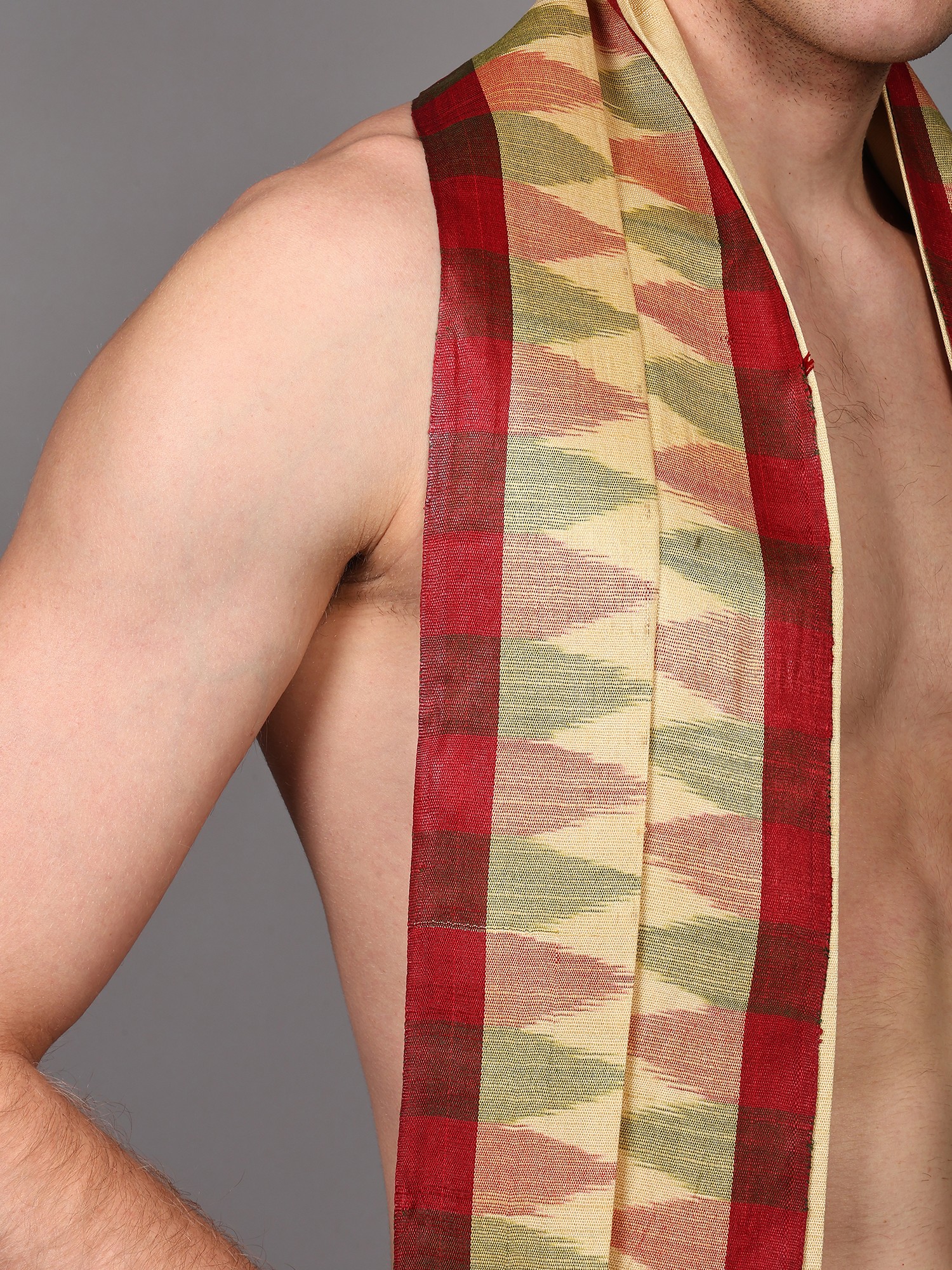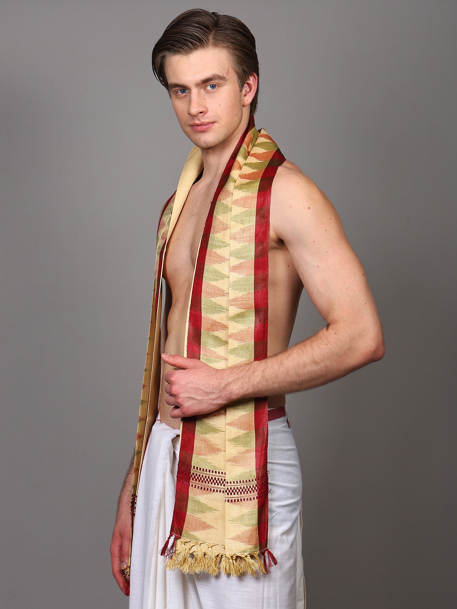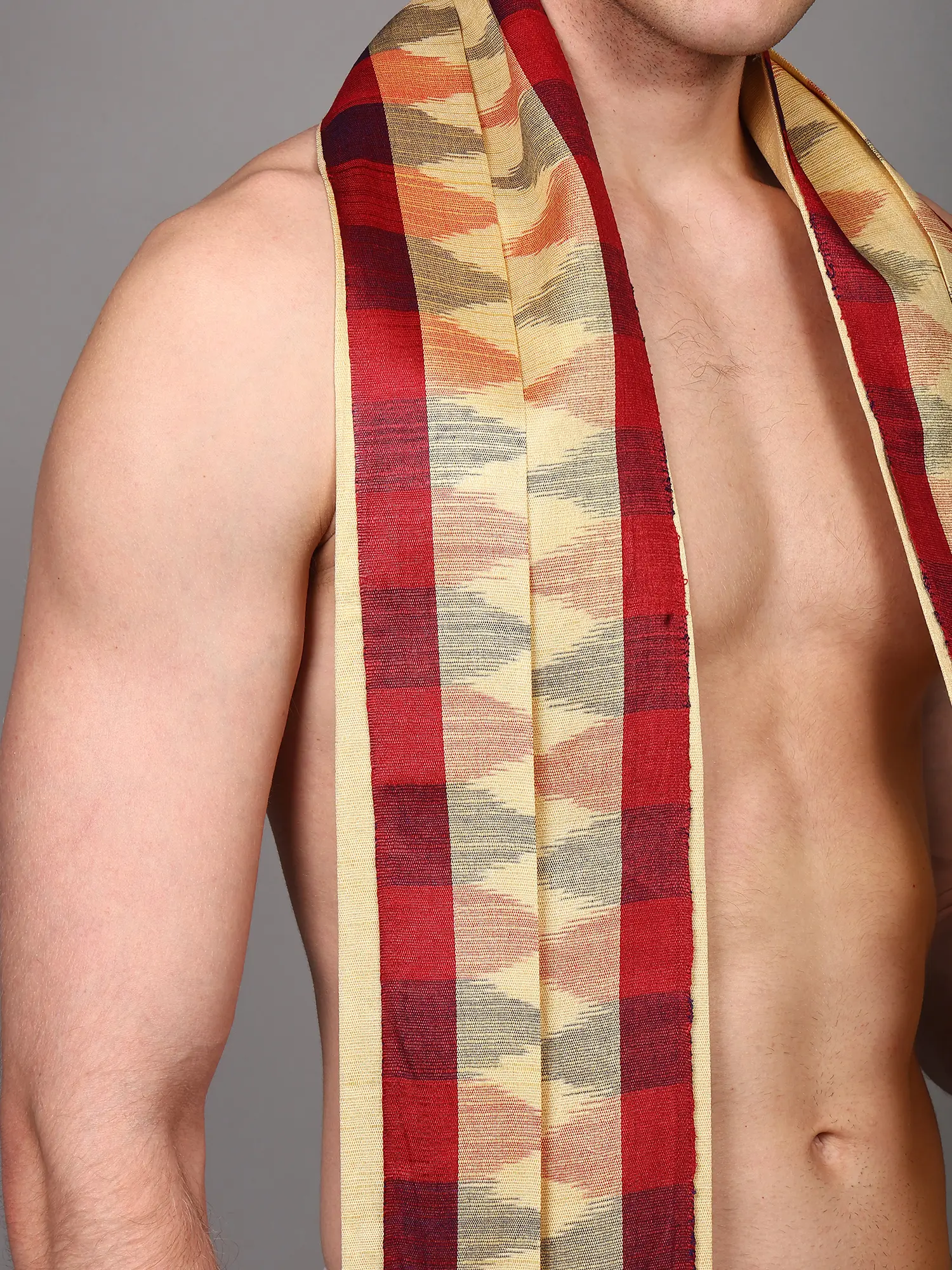 Temple Border Pure Khadi Silk Angavastram from Odisha