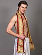 This Angavastram is designed to complement traditional Indian menswear, most notably the dhoti. It can be draped over the shoulder in various styles, allowing for personal expression and adaptability to different occasions. Whether you are attending a wedding, a religious ceremony, or a cultural festival, this Angavastram adds a layer of authenticity and regal charm to your ensemble. Its timeless design transcends fleeting trends, ensuring it remains a cherished part of your wardrobe for years to come. Embrace the spirit of tradition and adorn yourself with this exquisite piece of Indian artistry.
