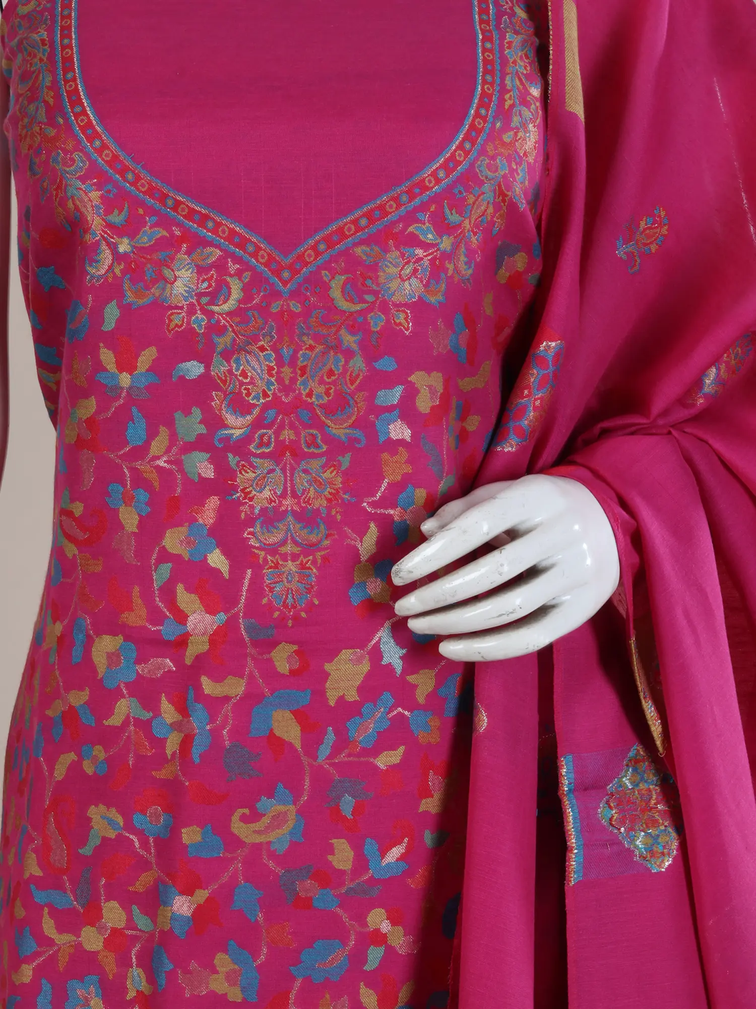 Three Piece Kani Jamawar Salwar Kameez Fabric from Amritsar with Dupatta and Zari Woven Vines