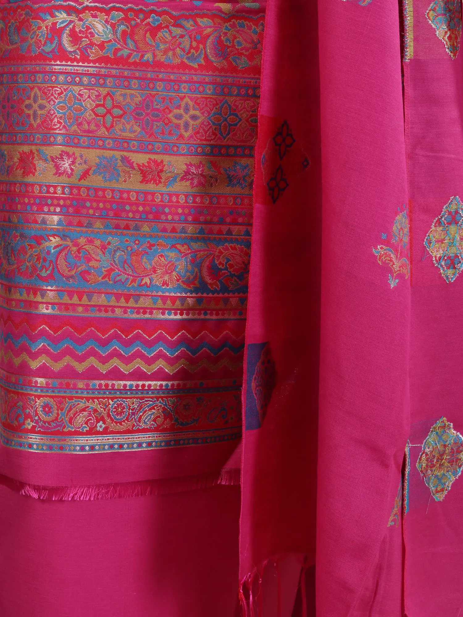 Plain Stole from Amritsar with Woven Kani Border