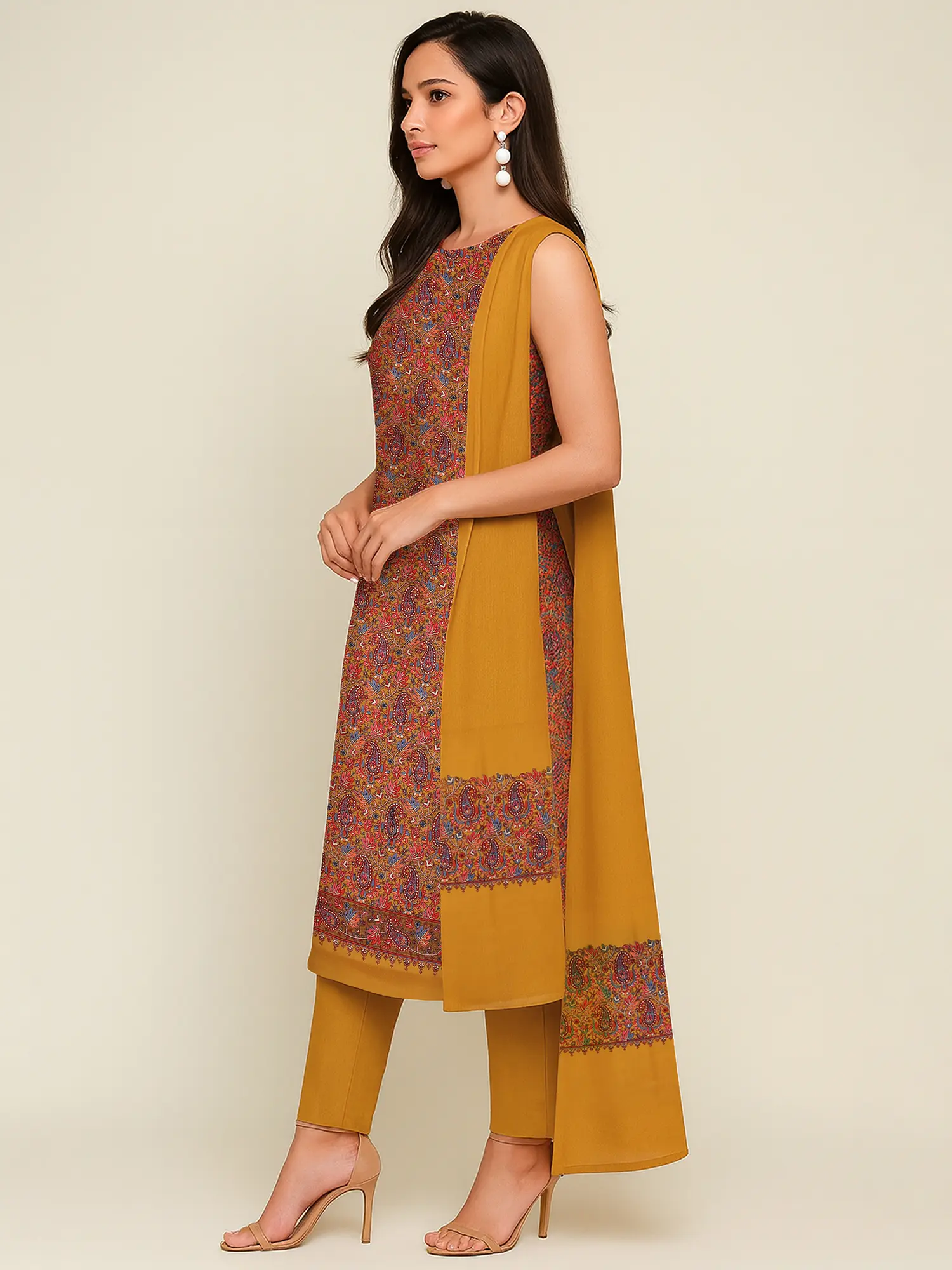 Exquisite Paisley Print & Golden Hues: A Statement Ensemble