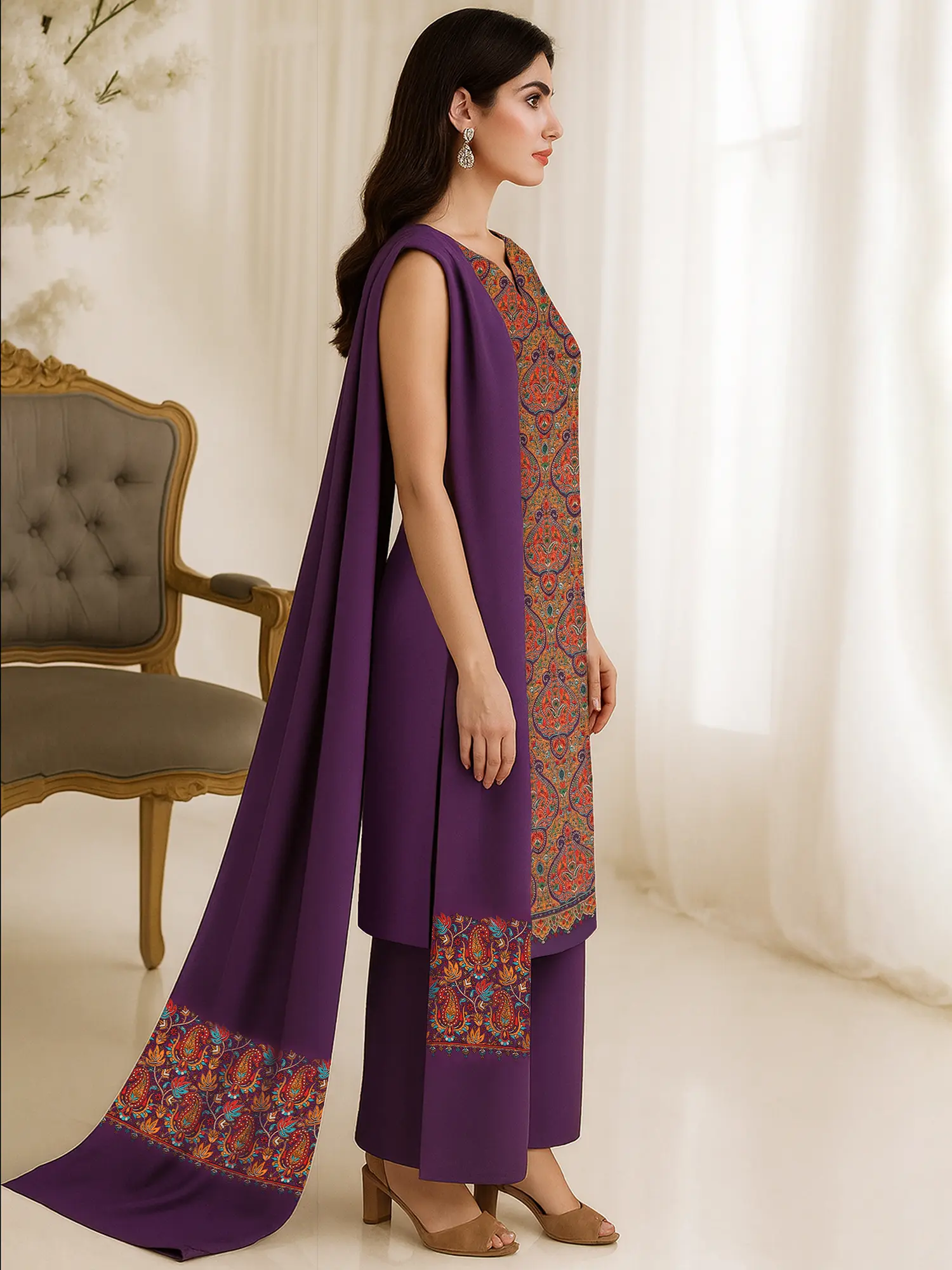 Brazilian-Sand Poly Wool Kani Jamawar Salwar Suit with Dupatta