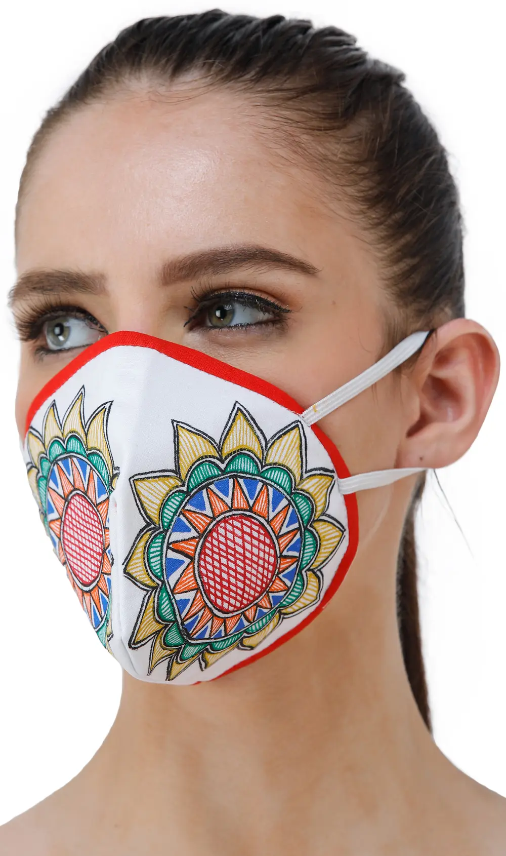 Three Ply Cotton Fashion Masks with Hand-Painted Madhubani Motifs (Flower-Mandala)