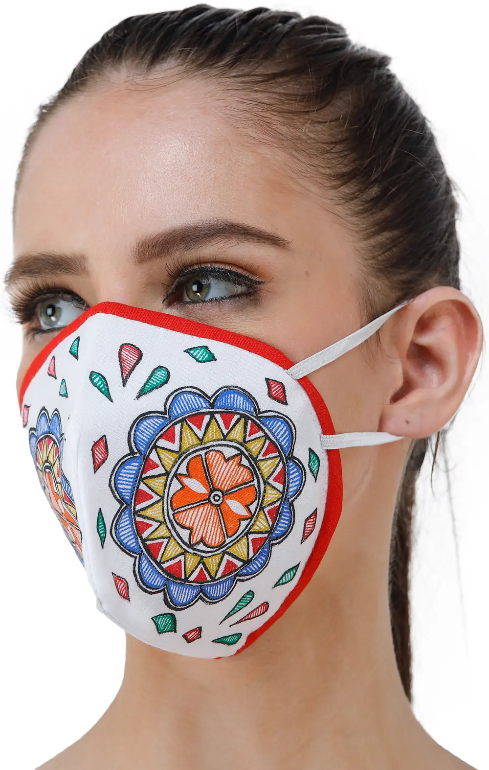 Three Ply Cotton Fashion Mask with Hand-Painted Madhubani Motifs (Flower-Mandala)