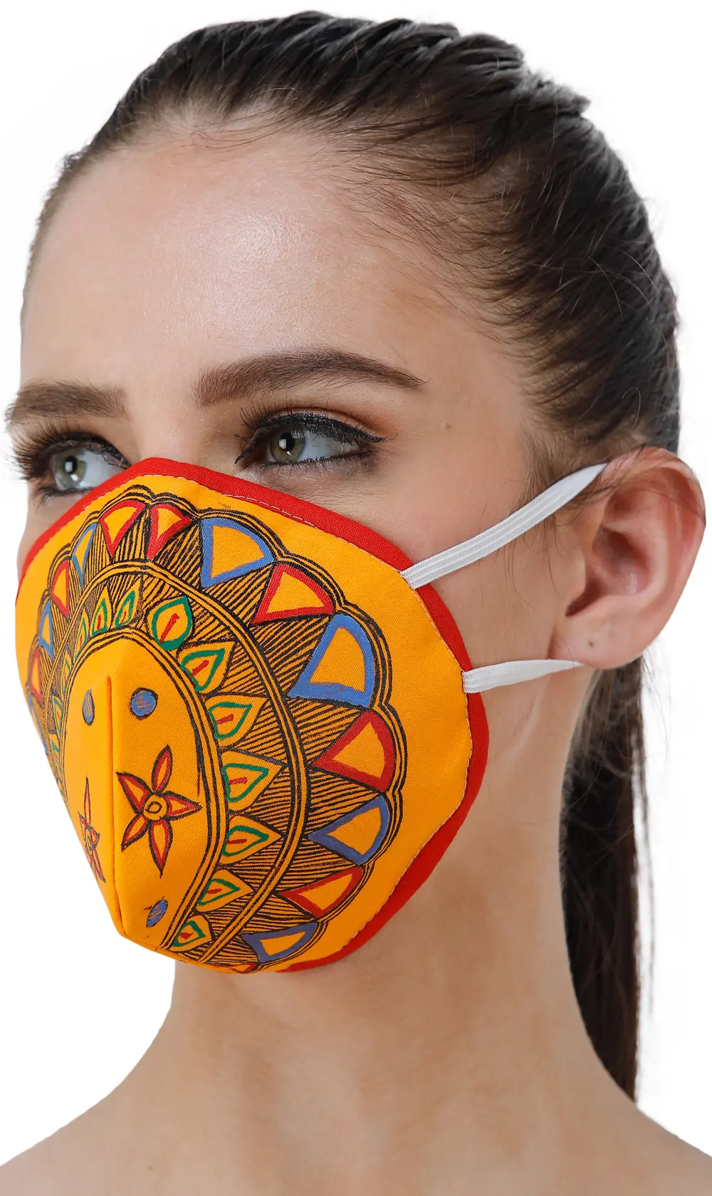 Three Ply Cotton Fashion Masks with Hand-Painted Madhubani Motifs (Flower-Mandala)