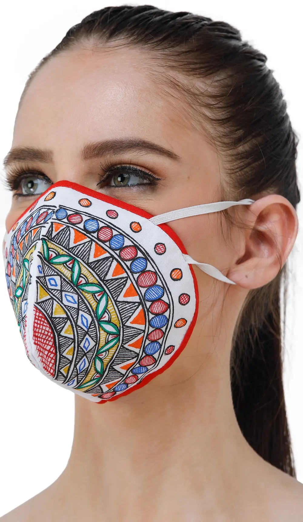 Two Ply Cotton Fashion Mask with Hand-Painted Madhubani Motifs