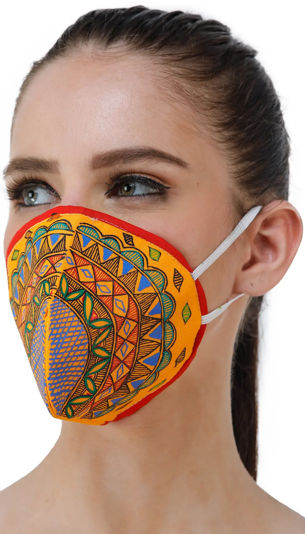 Two Ply Cotton Fashion Mask with Hand-Painted Madhubani Motifs