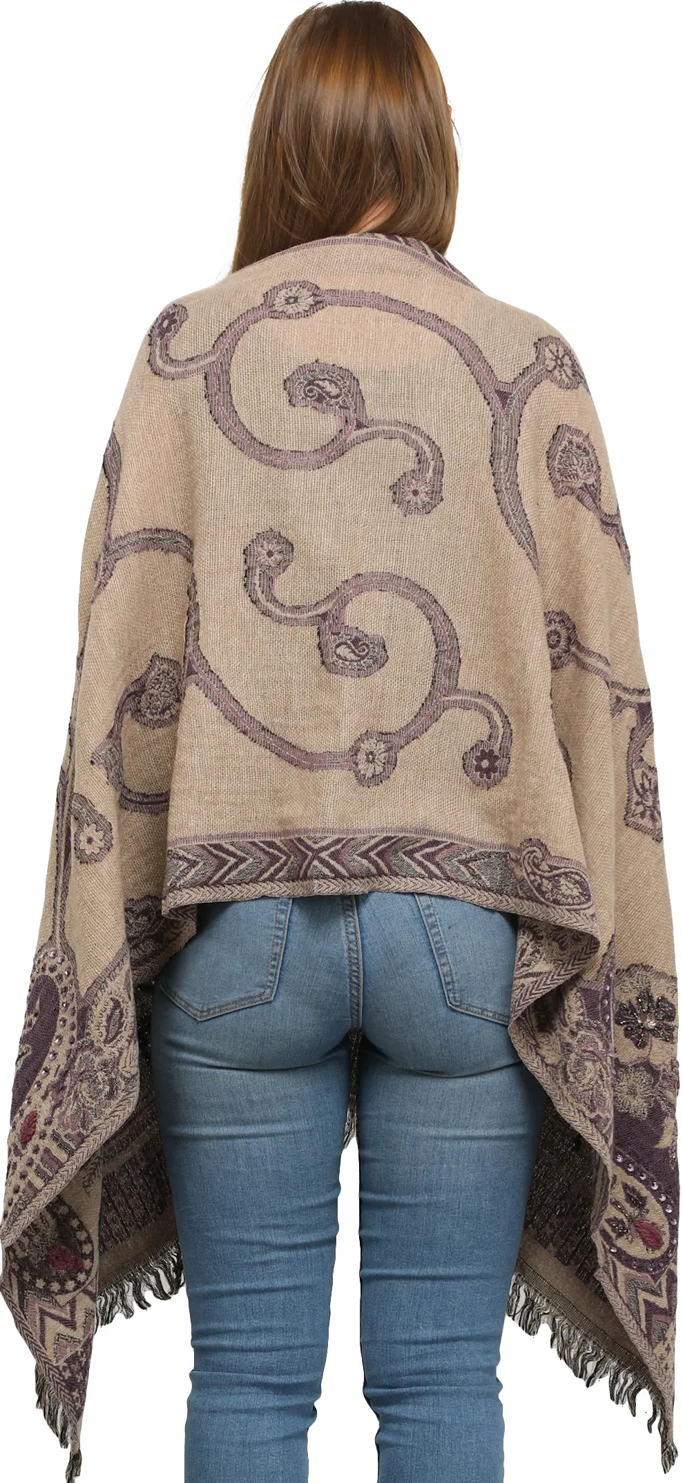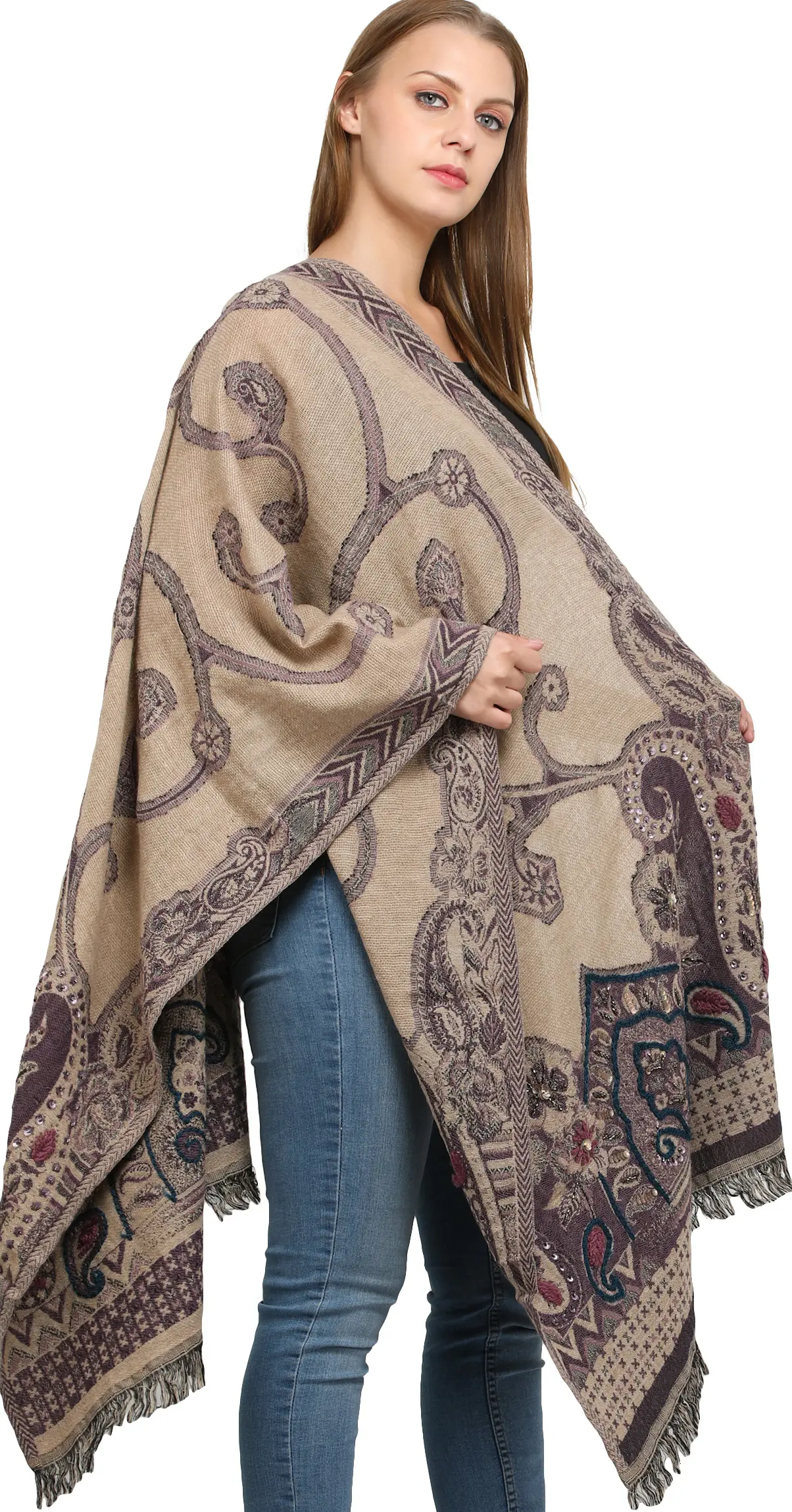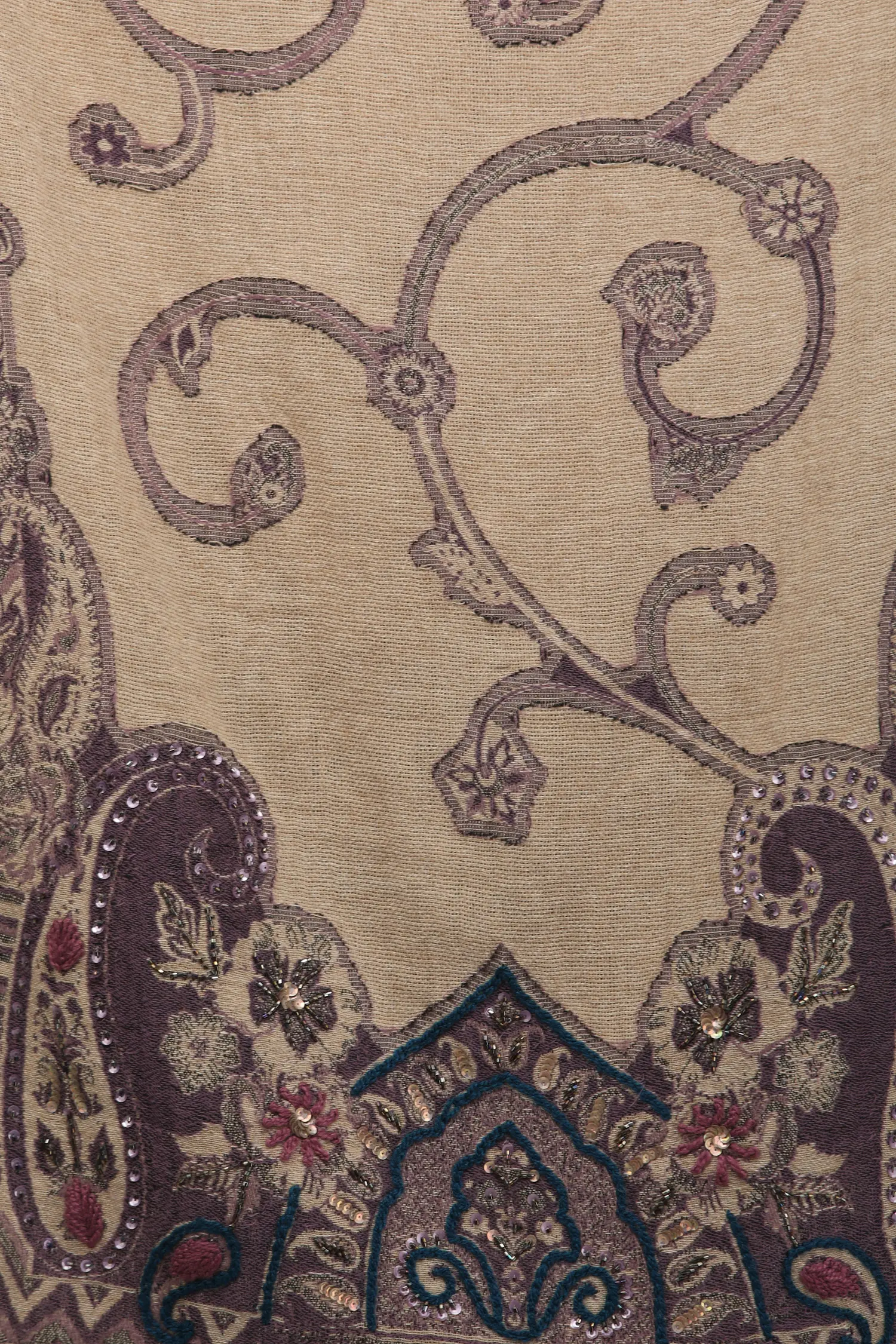 Wool Stole with Aari Embroidered Flowers and Paisleys from Amritsar