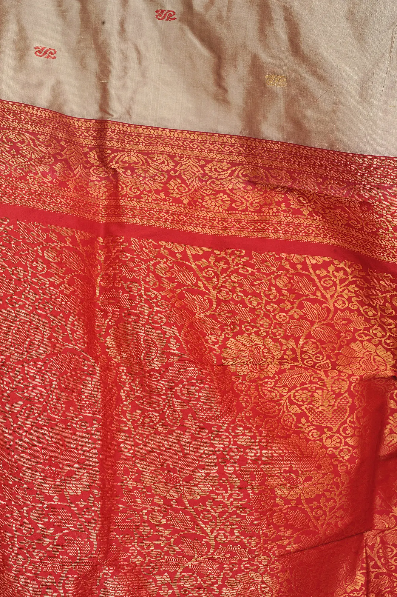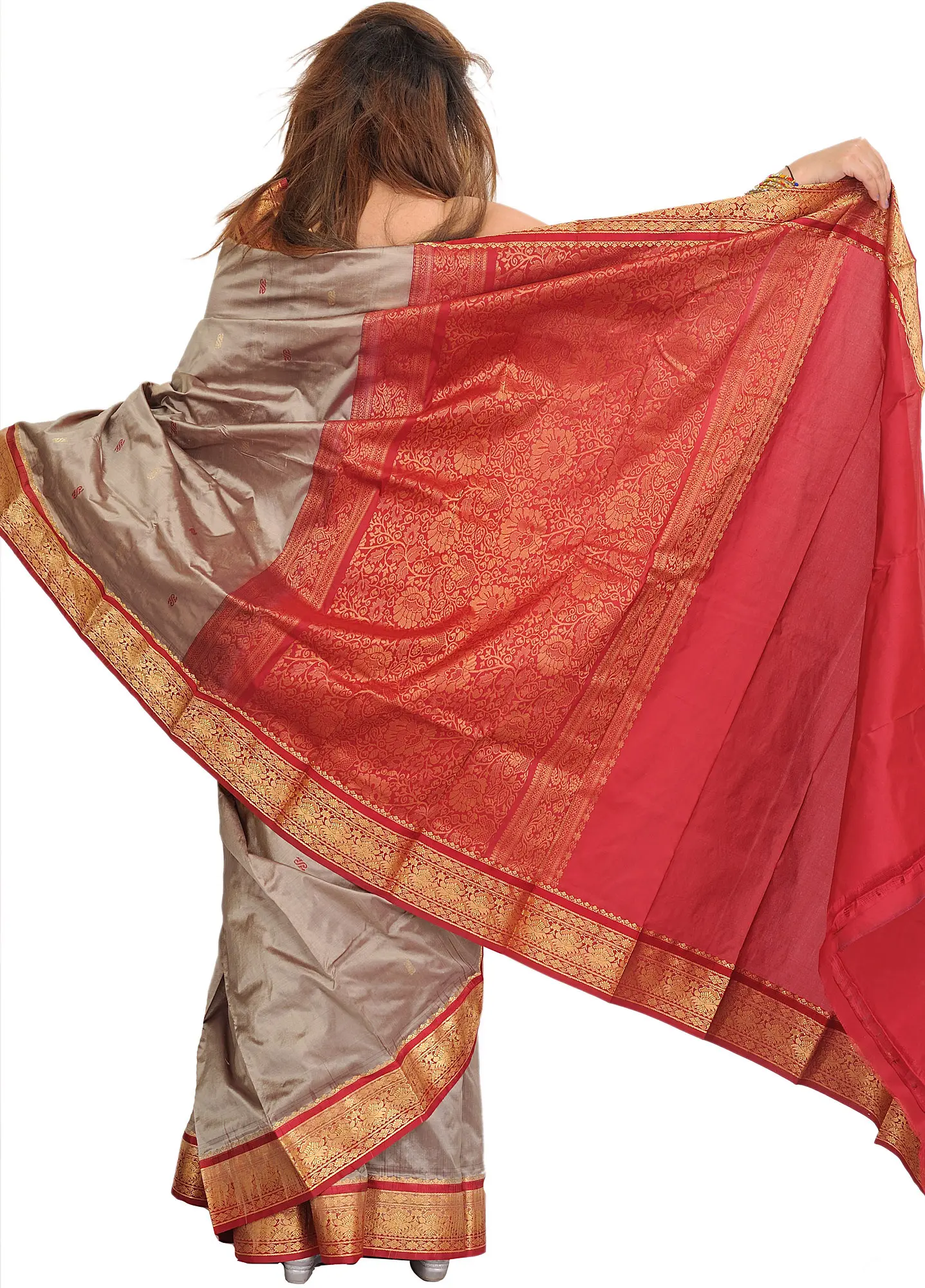 Timber-Wolf Sari from Bangalore with Woven Bootis and Brocaded Aanchal