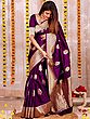Party Wear Vichitra Silk Saree With Gold Zari Work On Border And Motifs All-Over