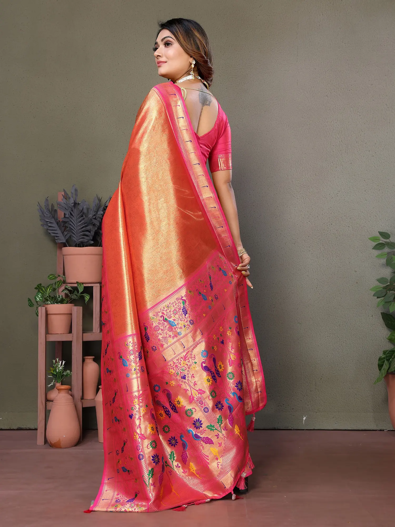 Ethnic Motifs Weaving Work Attractive Silk Festive Wear Saree With Tassels Pallu
