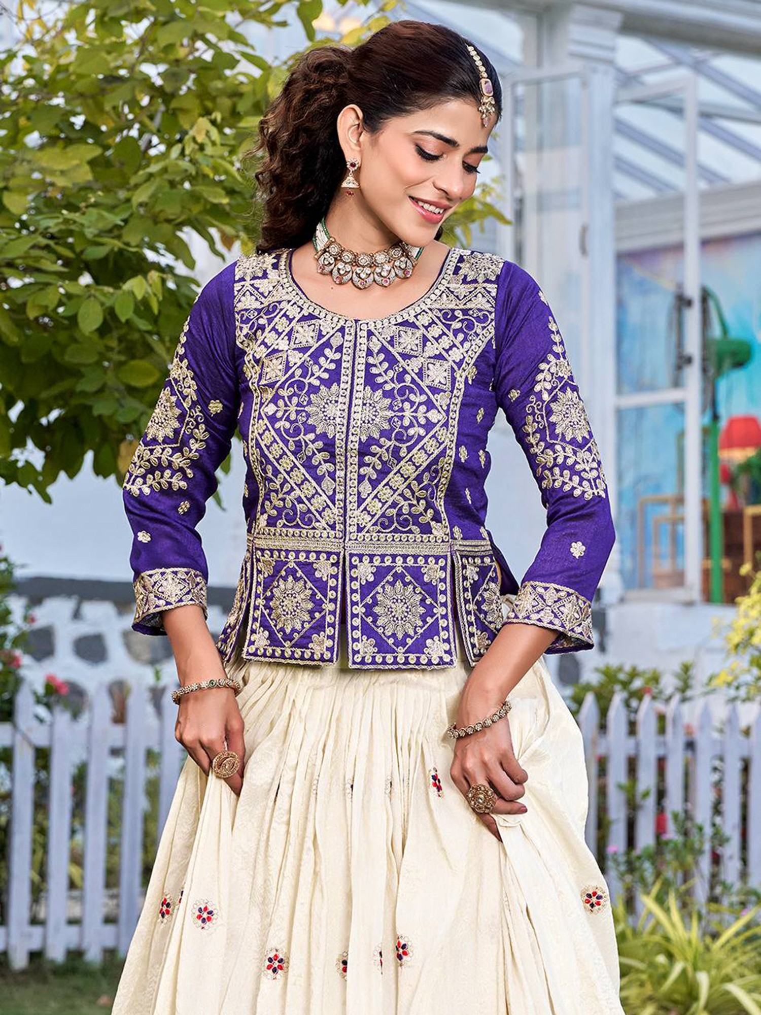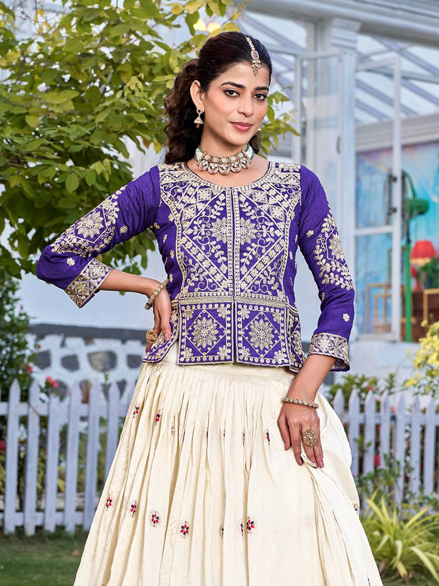 Stunning Lehenga Set In Two Tone Cotton Organza Silk With Intricate Zari And Sequence Embroidery For Celebrations