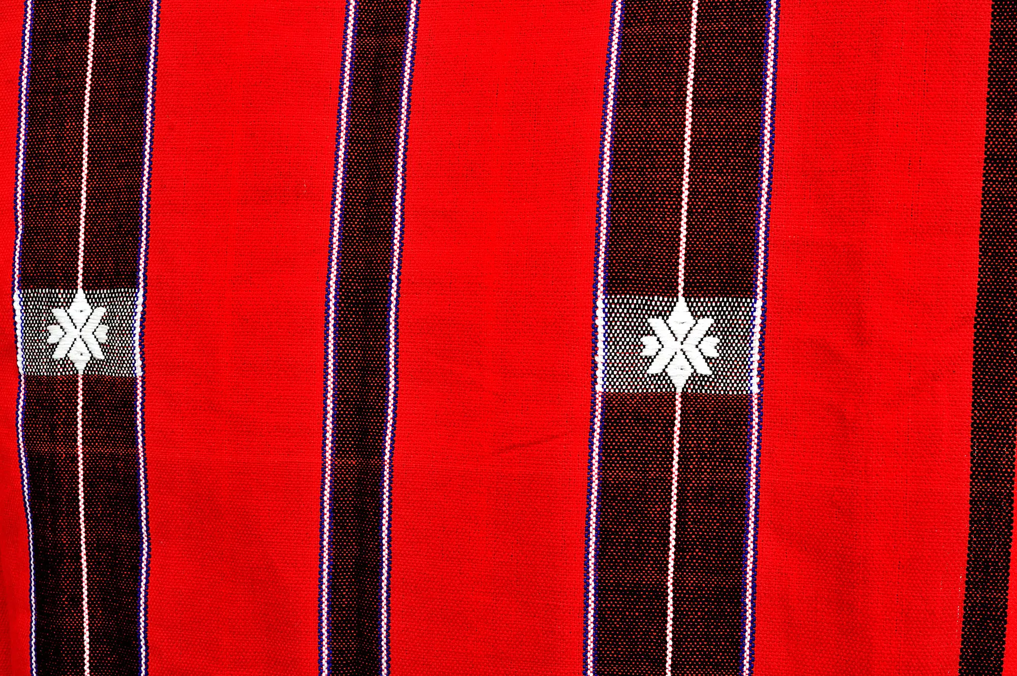 Discover the exquisite craftsmanship and rich cultural heritage of Northeast India with this stunning, tomato-red cotton shawl. Directly inspired by the traditional weaves of Nagaland, this piece is more than just an accessory; it's a wearable work of art, embodying generations of textile artistry. The striking design features bold, evenly spaced stripes of deep black that create a dynamic contrast against the vibrant red backdrop. These classic stripes are beautifully punctuated by thinner bands of white and a subtle hint of indigo, adding depth and visual interest to the overall pattern.