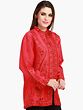 Art Silk Dupatta with All-Over Floral Vines and Fringes