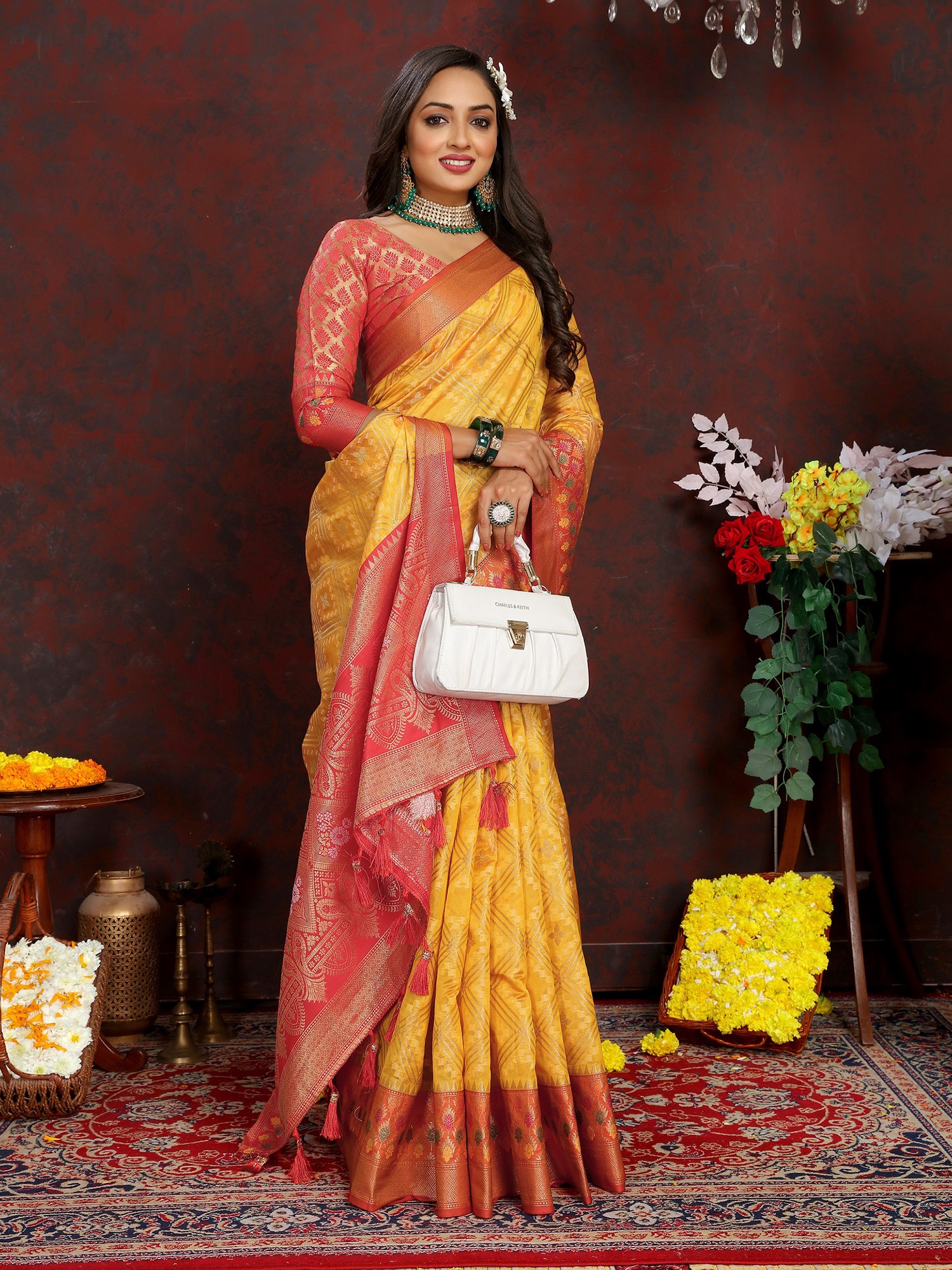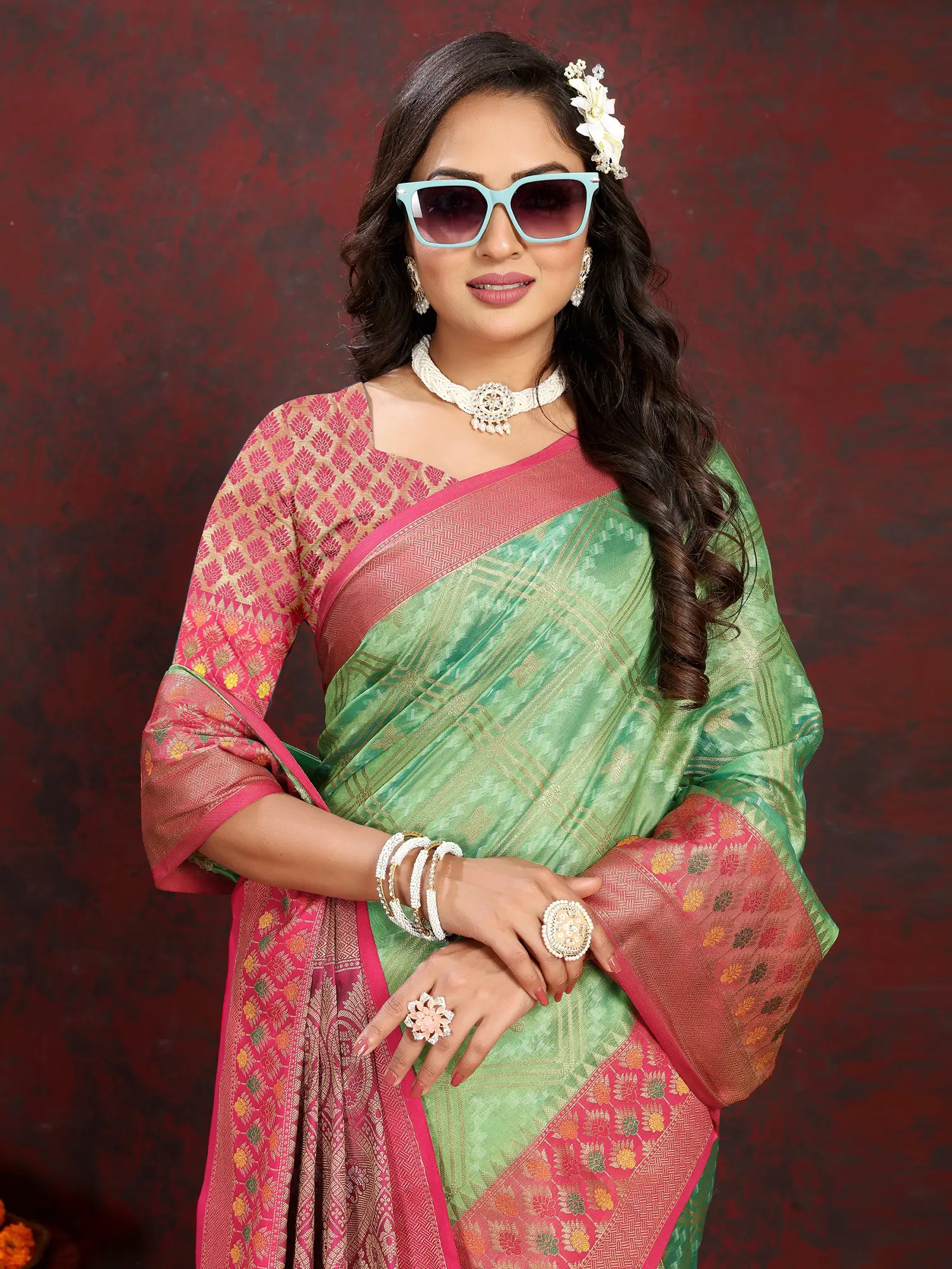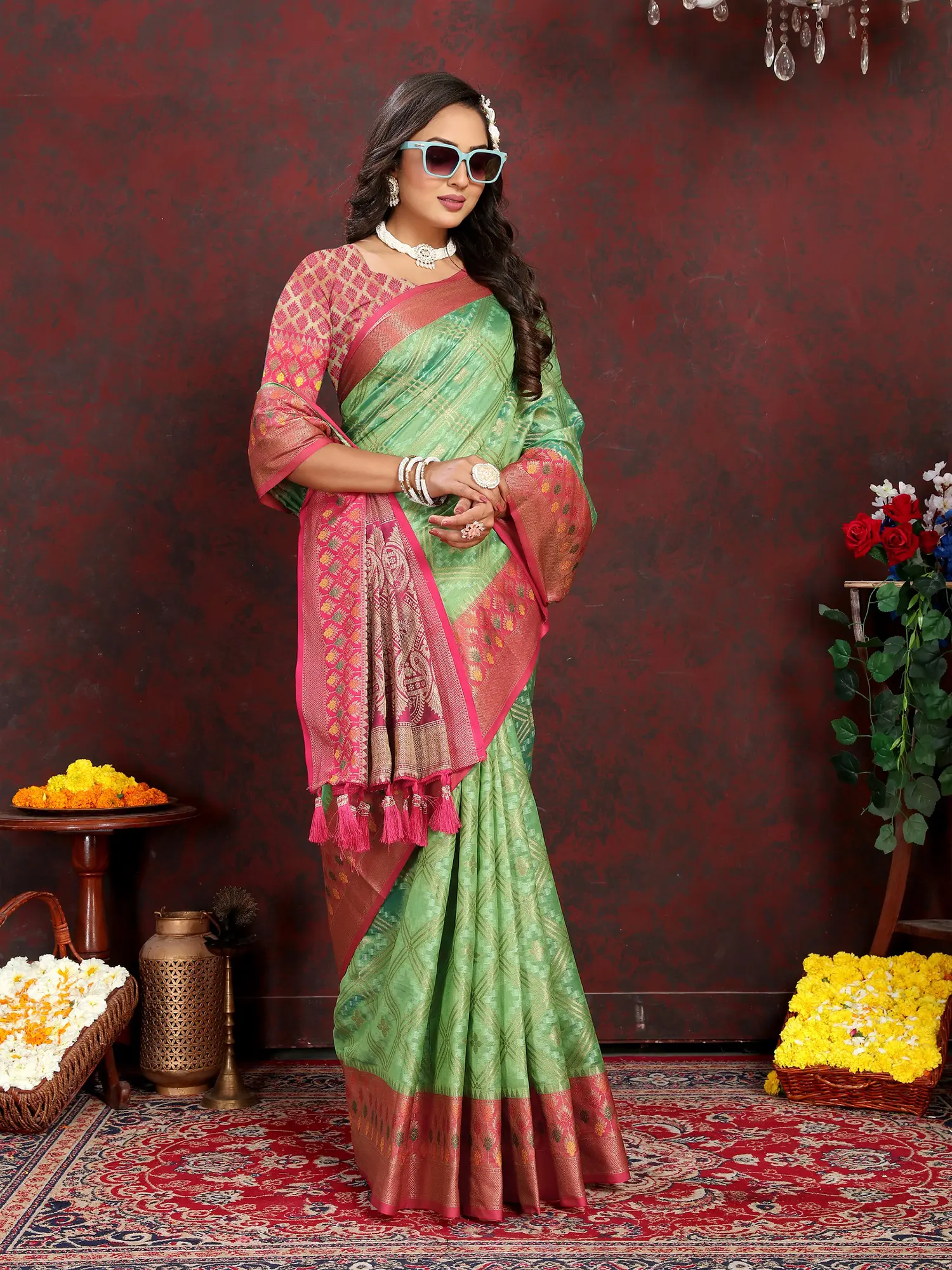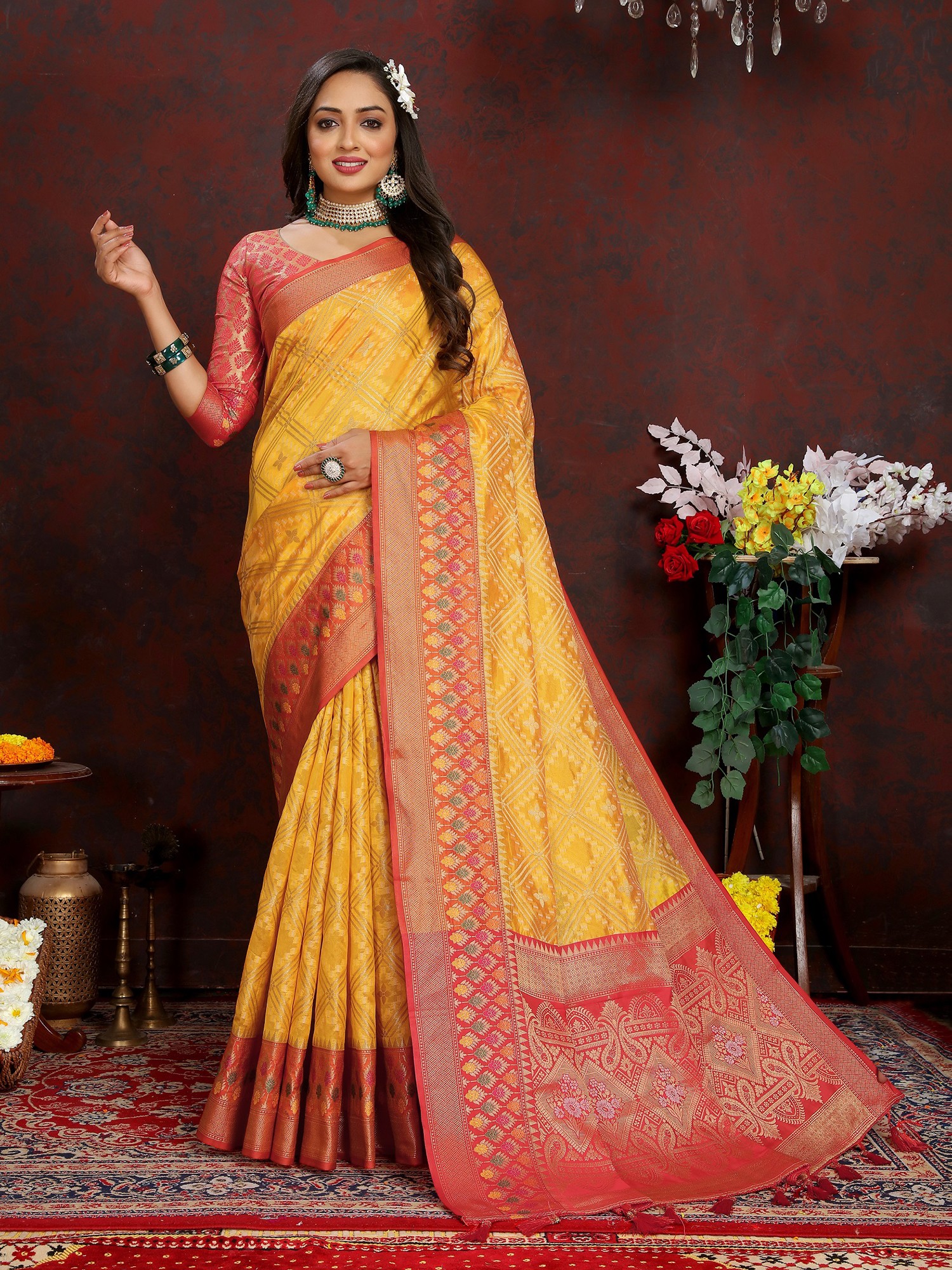 Soft Lichi Silk Traditional Wide Border Festive Wear Saree With Matching Blouse