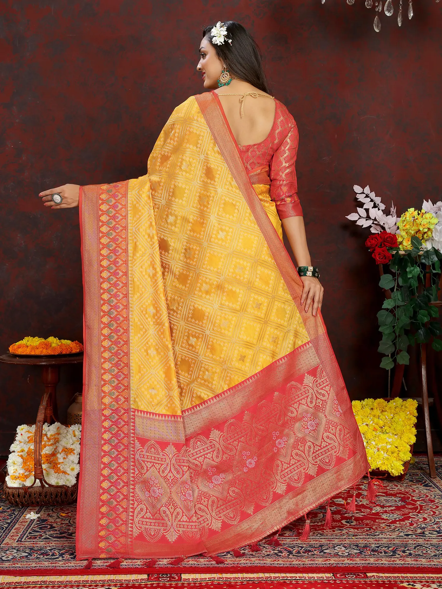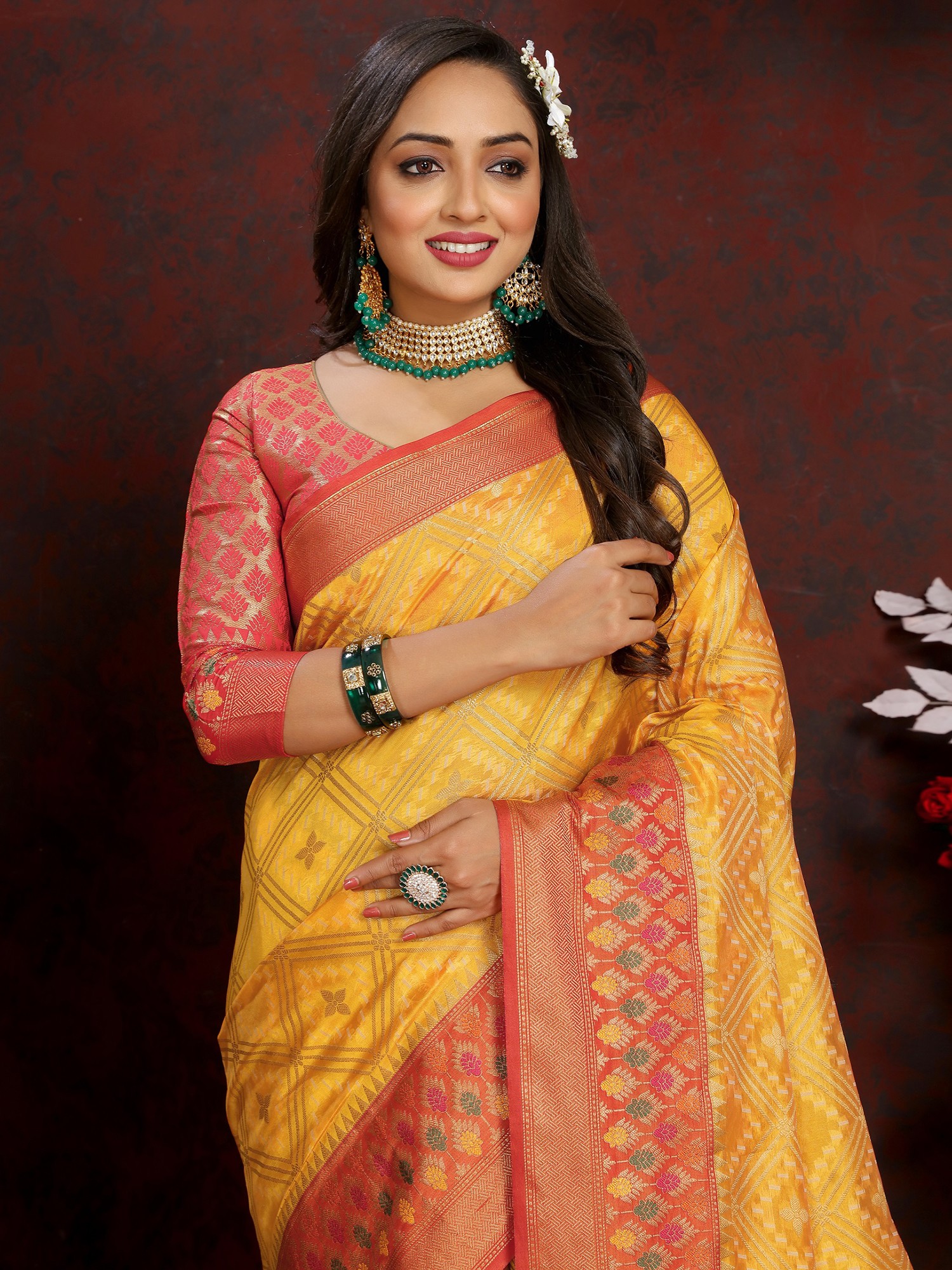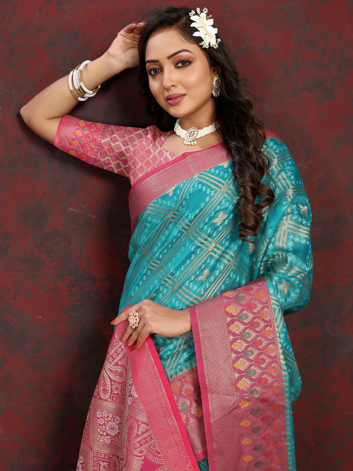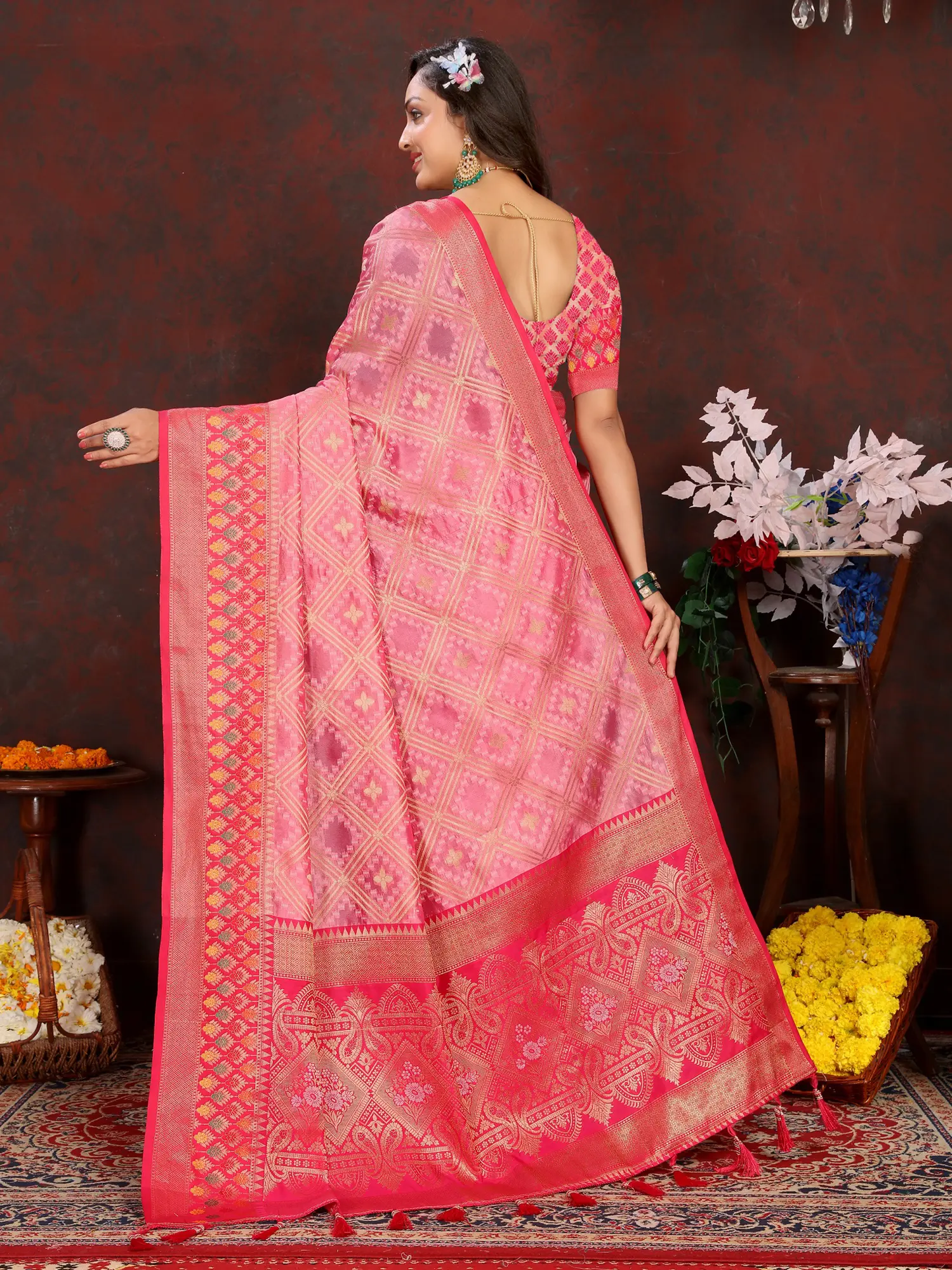 Brocaded Banarasi Silk Floral Butta Saree with Chakra Pattern Wide Border