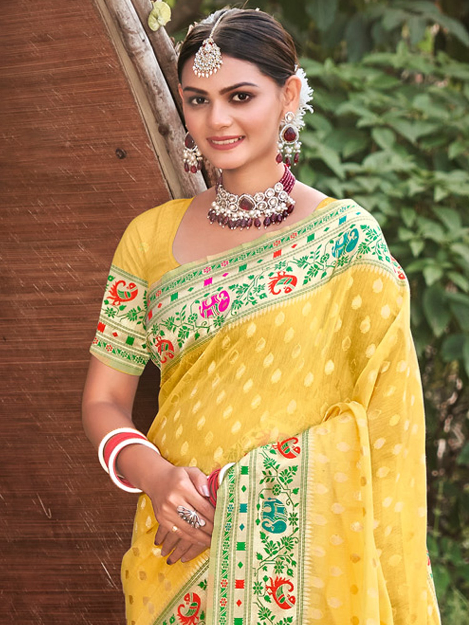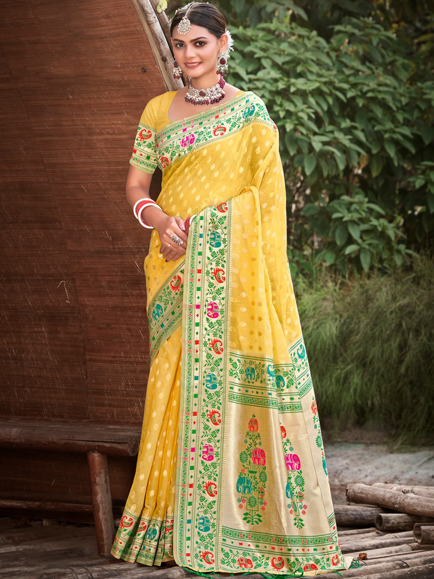 Traditional Design Paithani Silk Saree with Elephant Motifs and Tassels