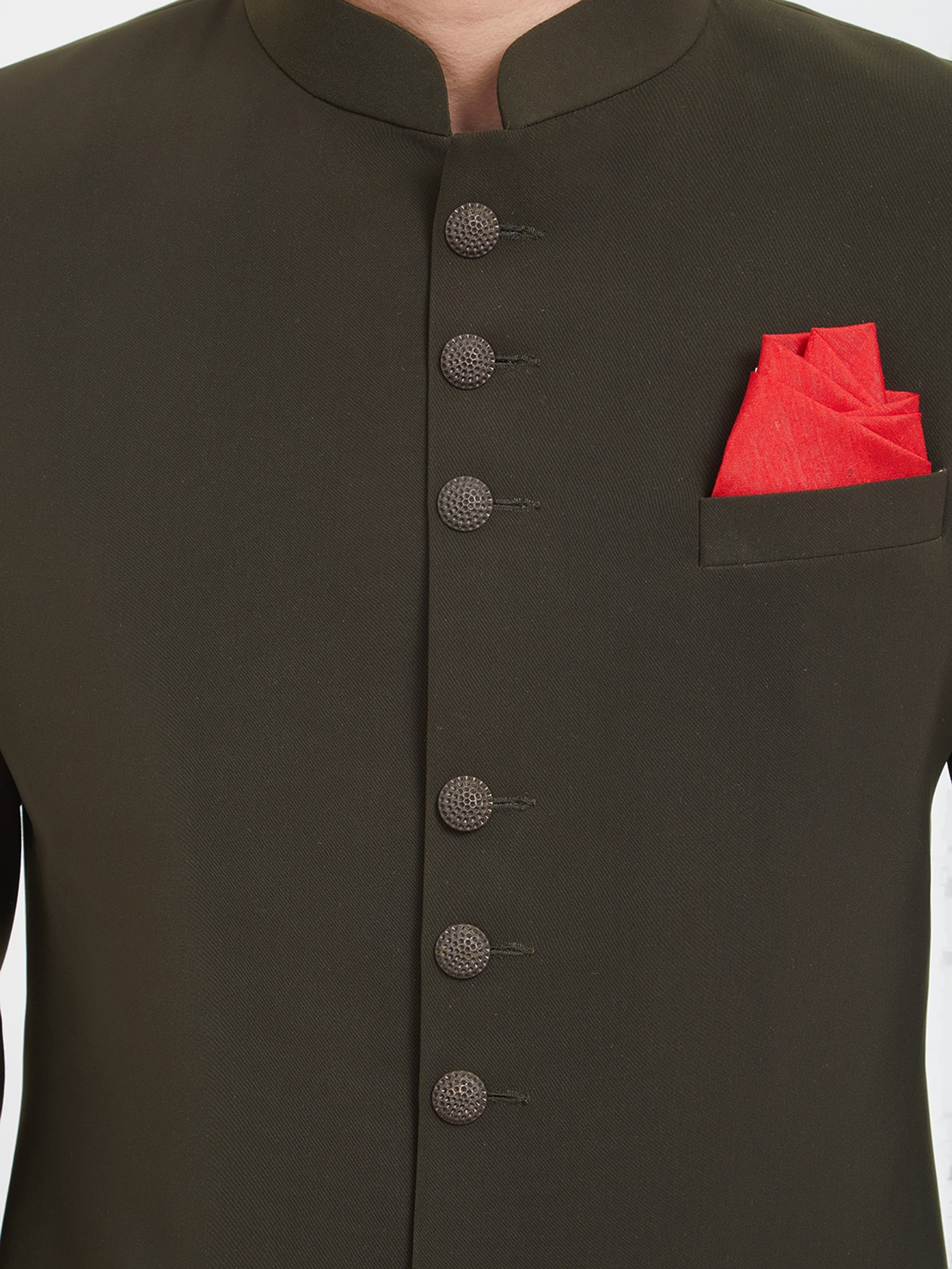 The rich hue of the outer garment provides a striking yet understated backdrop, punctuated by a row of harmoniously matched buttons. Its clean lines and structured collar create a regal profile, while the accompanying churidar pajama offers a perfect balance of comfort and traditional aesthetic. This harmonious pairing ensures you move with grace and confidence, capturing attention for all the right reasons.