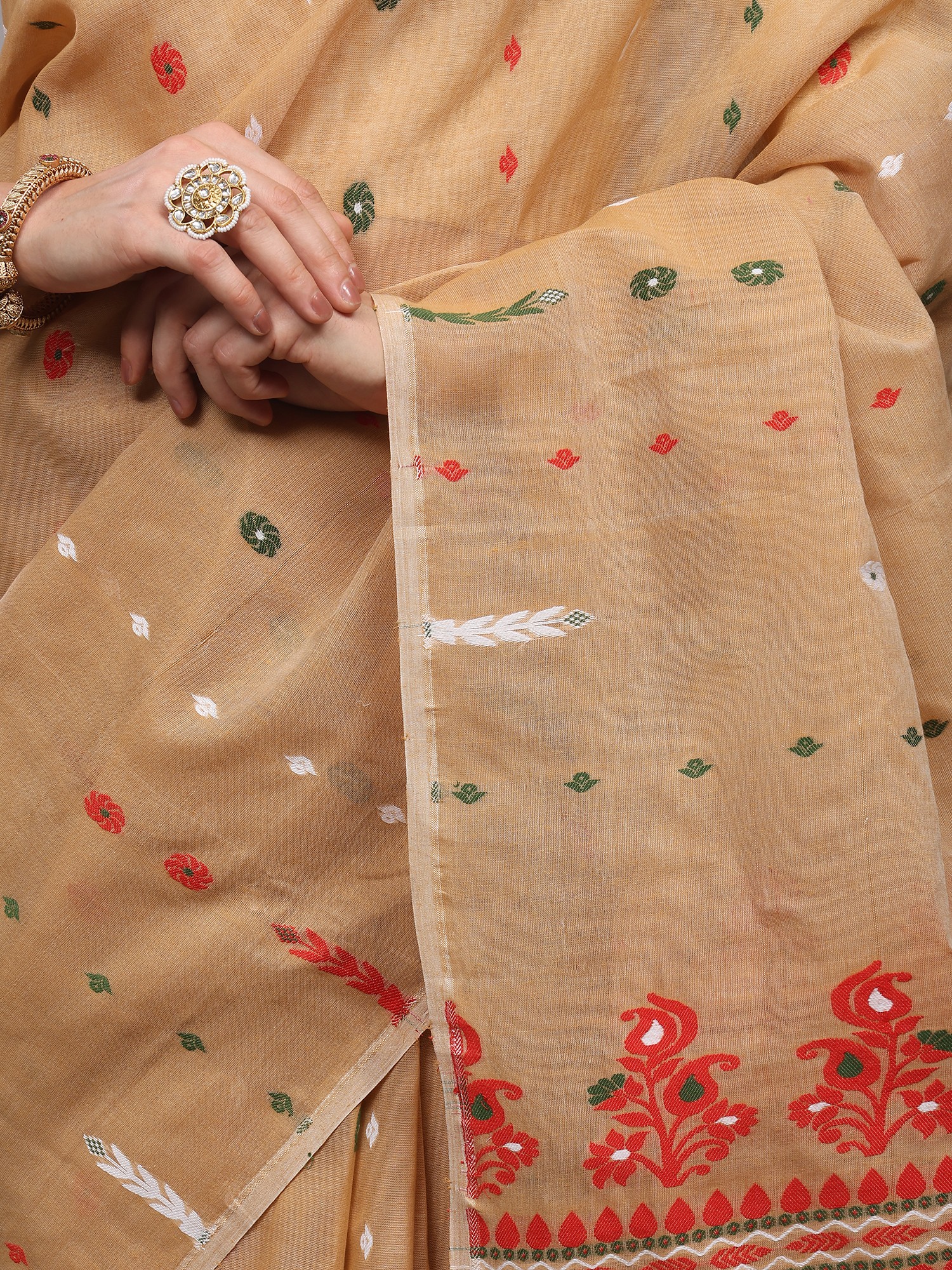 Pure Cotton Jamdani Handloom Saree with All-Over Woven Bootis from Bengal