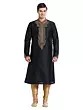 Black Kurta Pajama with Lucknowi Embroidery on Neck