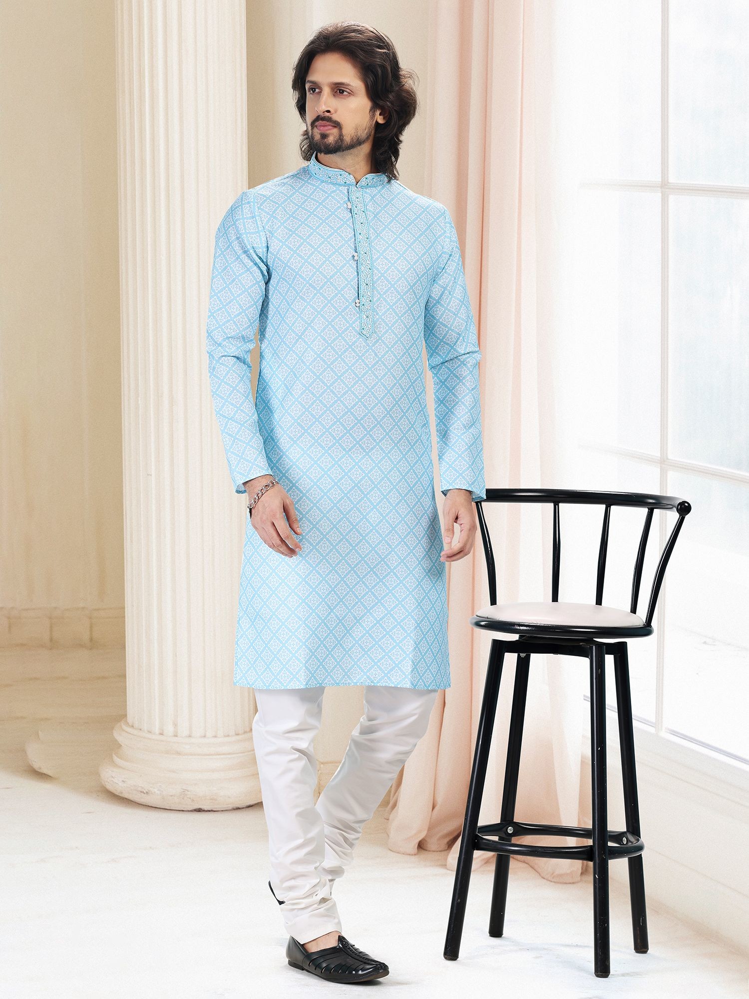 Wedding Kurta Pajama Set with Jacquard Woven Bootis All-Over