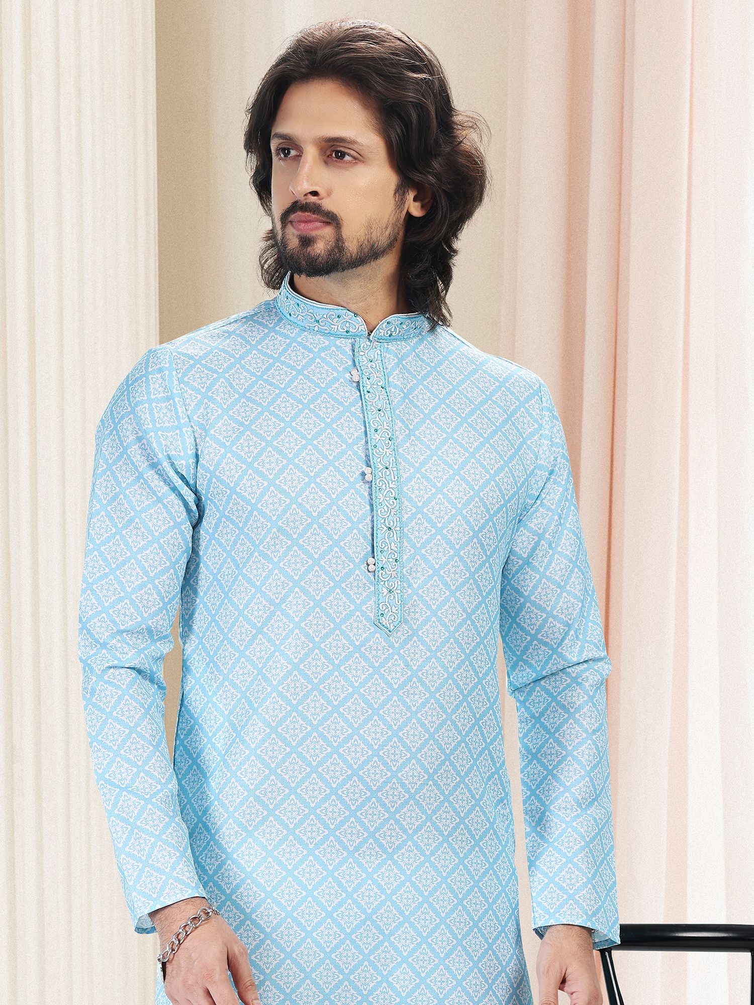 Elegant Brocade Kurta Pajama Set with Thread and Zari Work on Collar-Placket