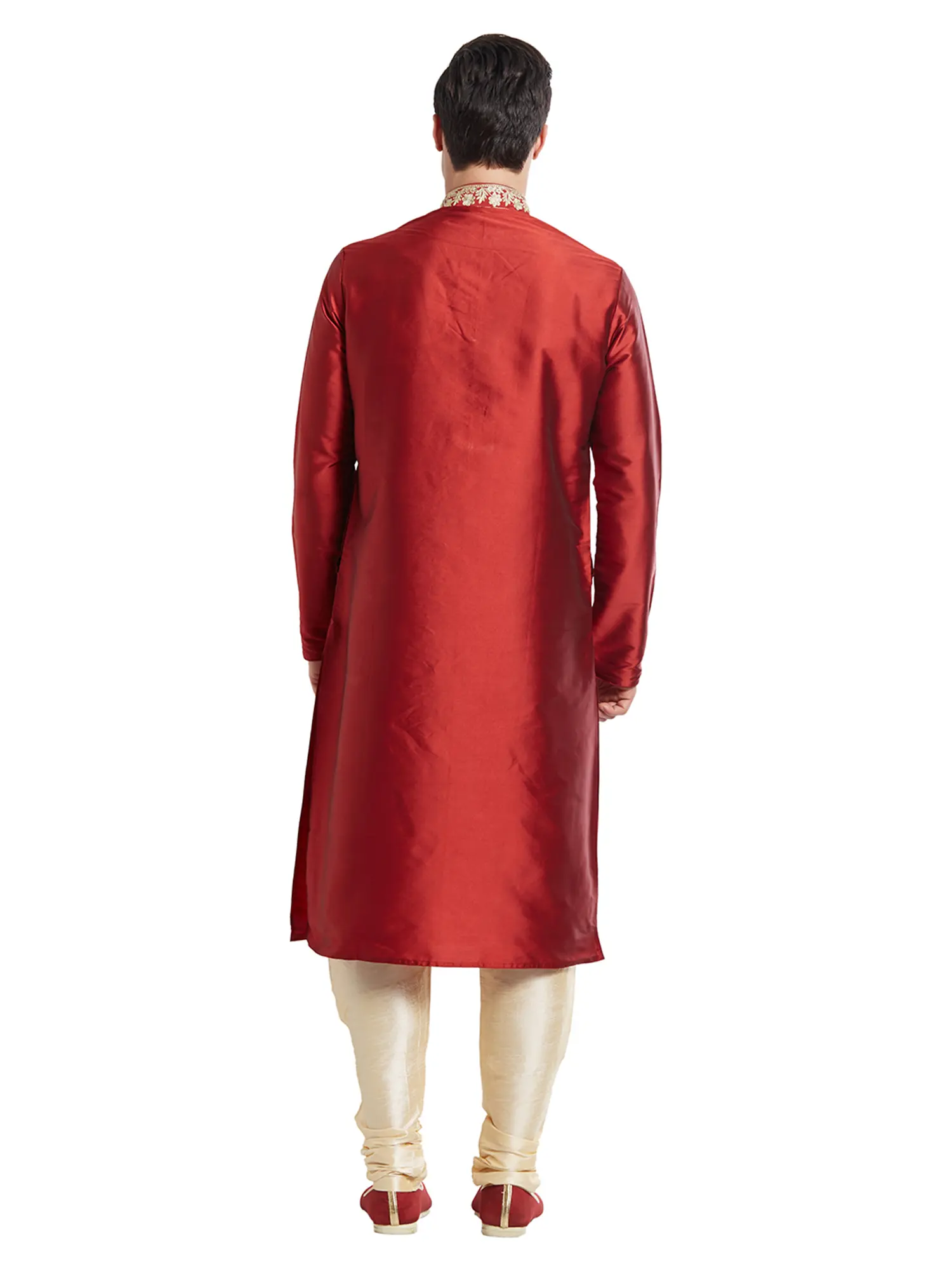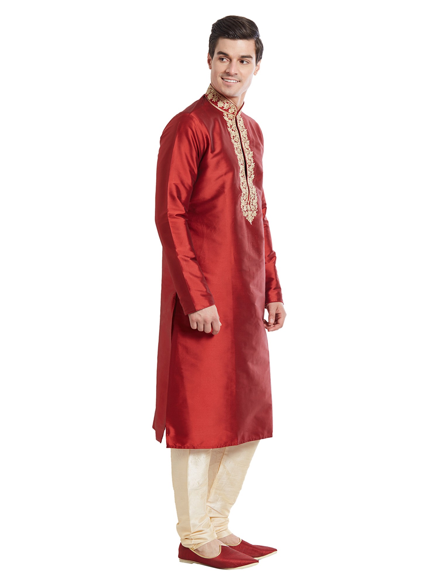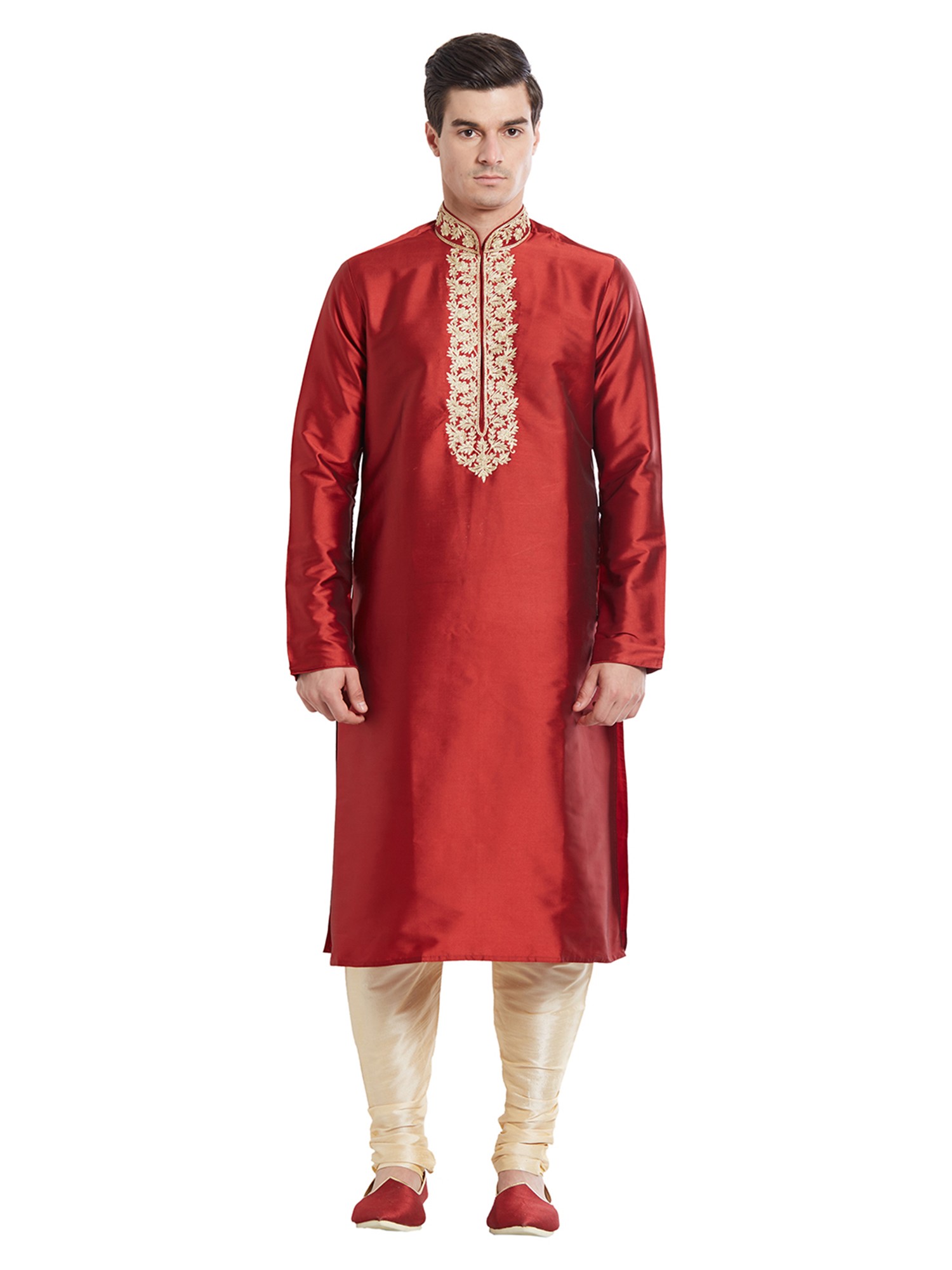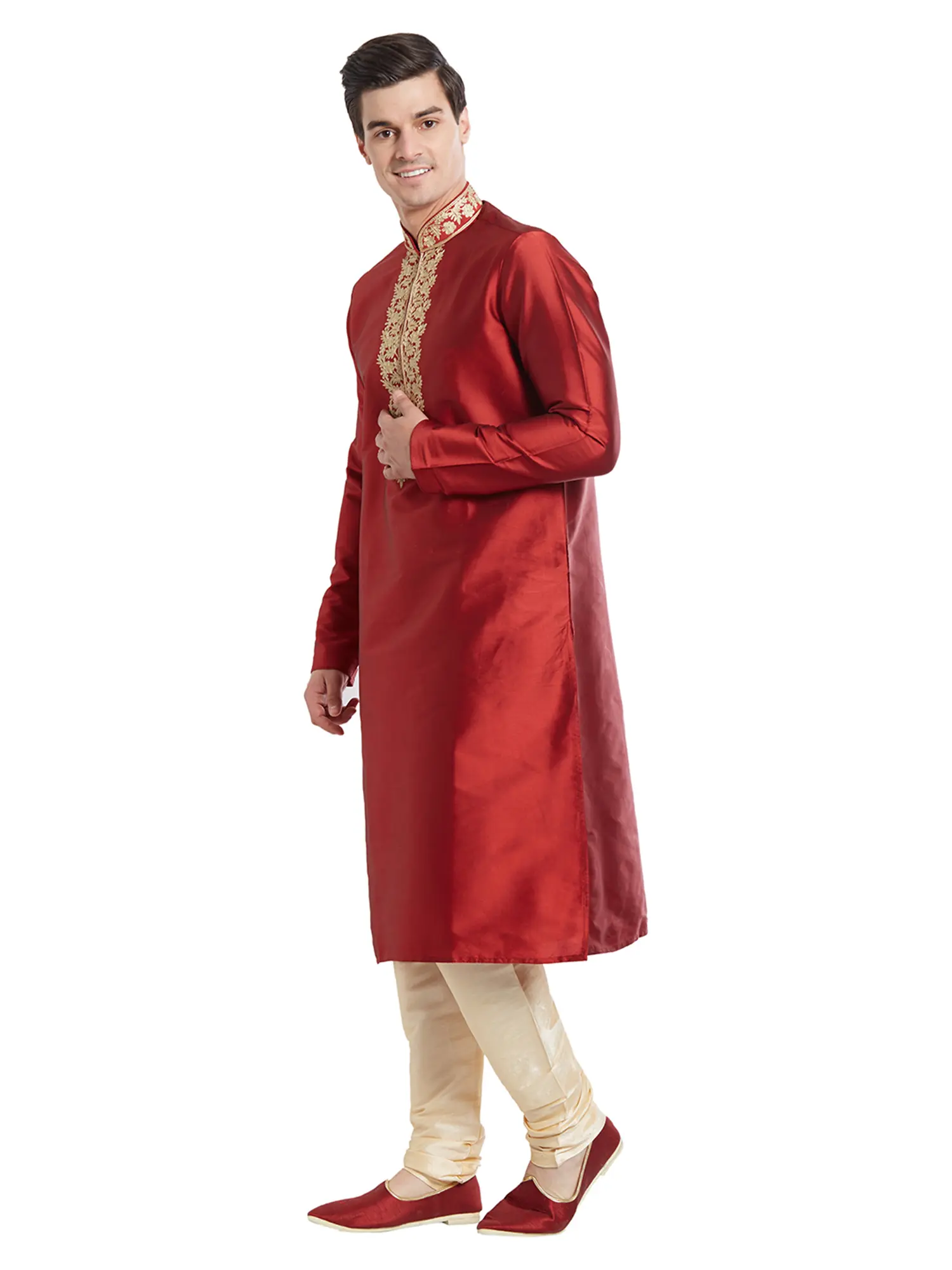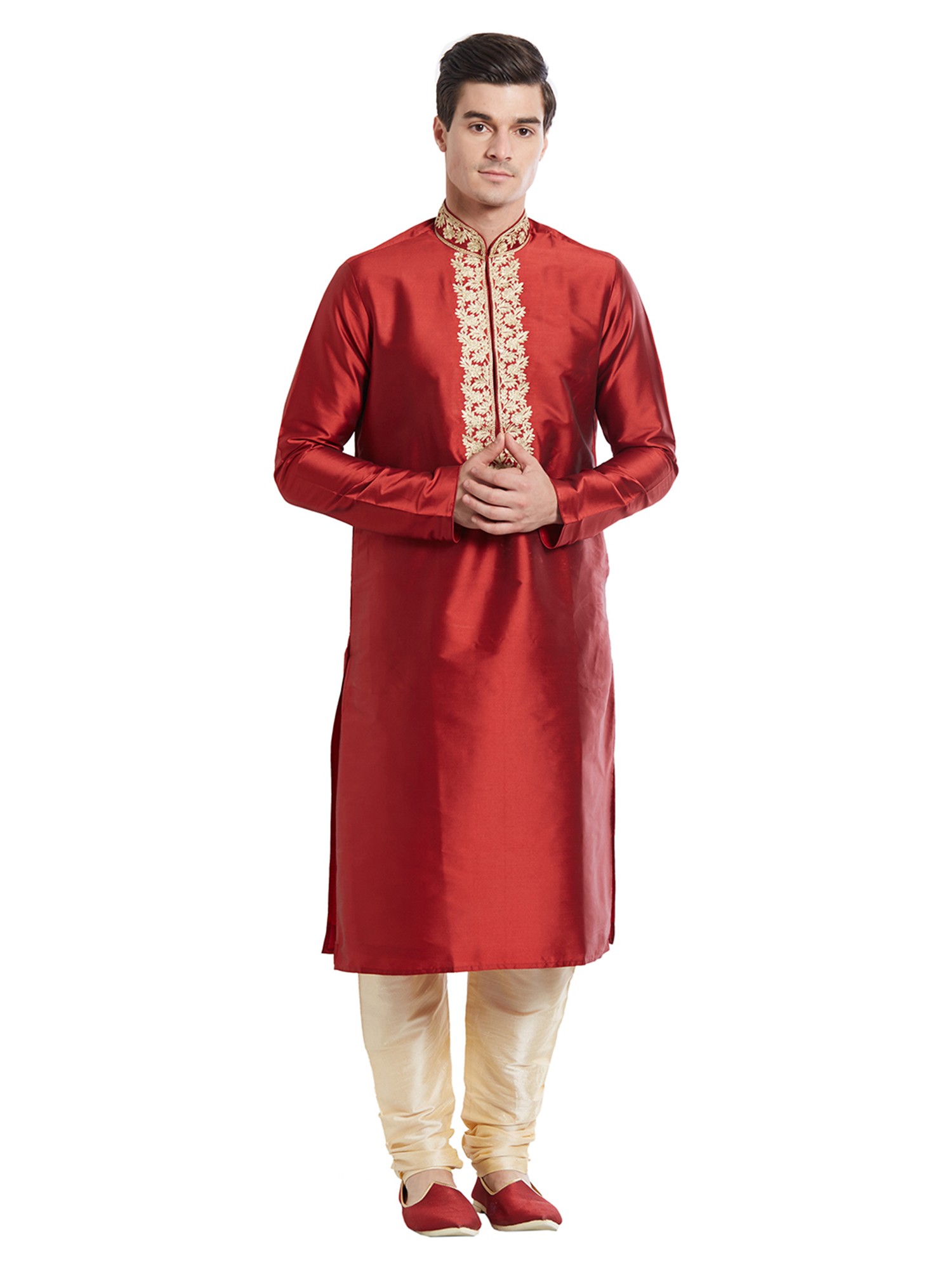 Art Silk Kurta Pajama Set for Men with Elegant Embroidery